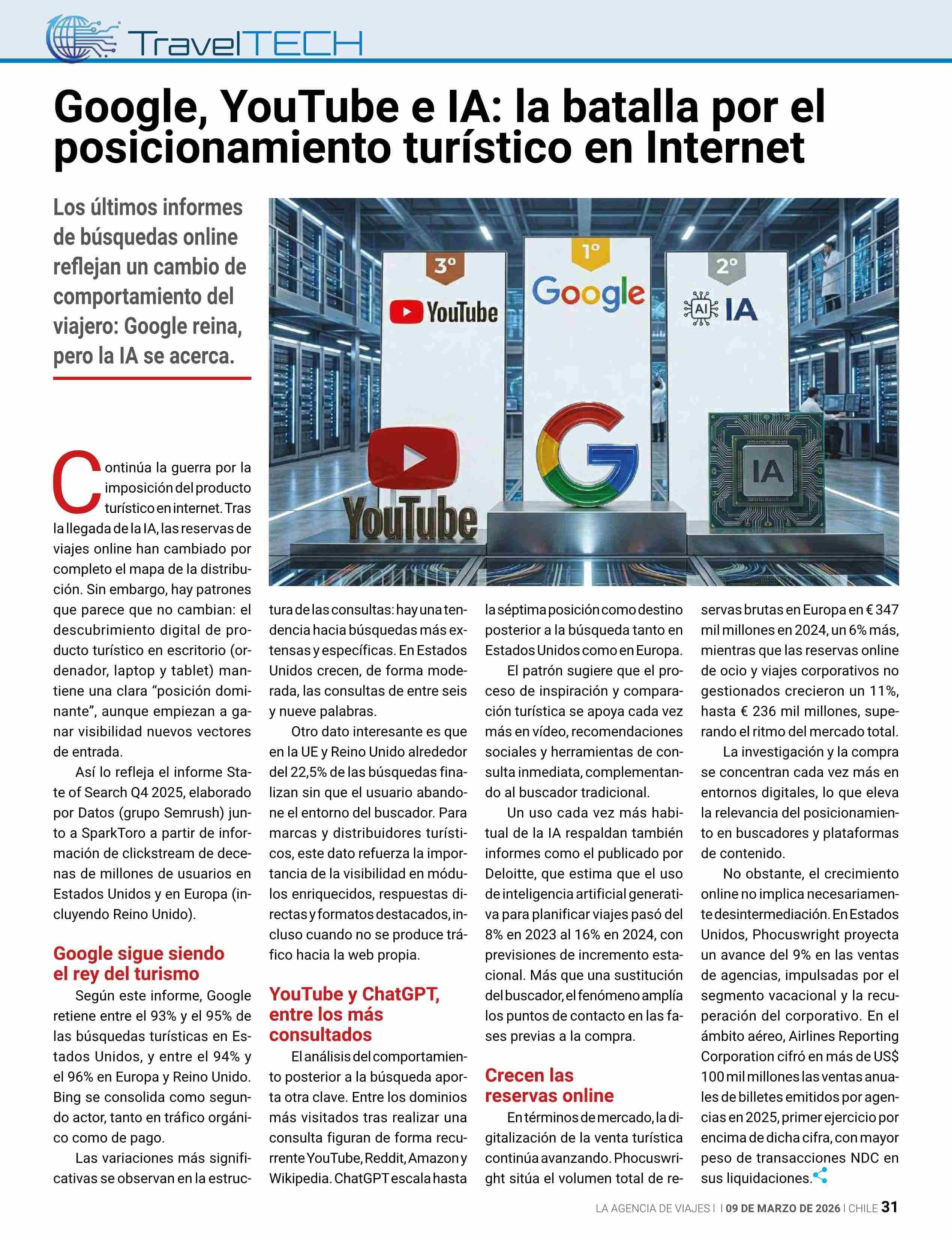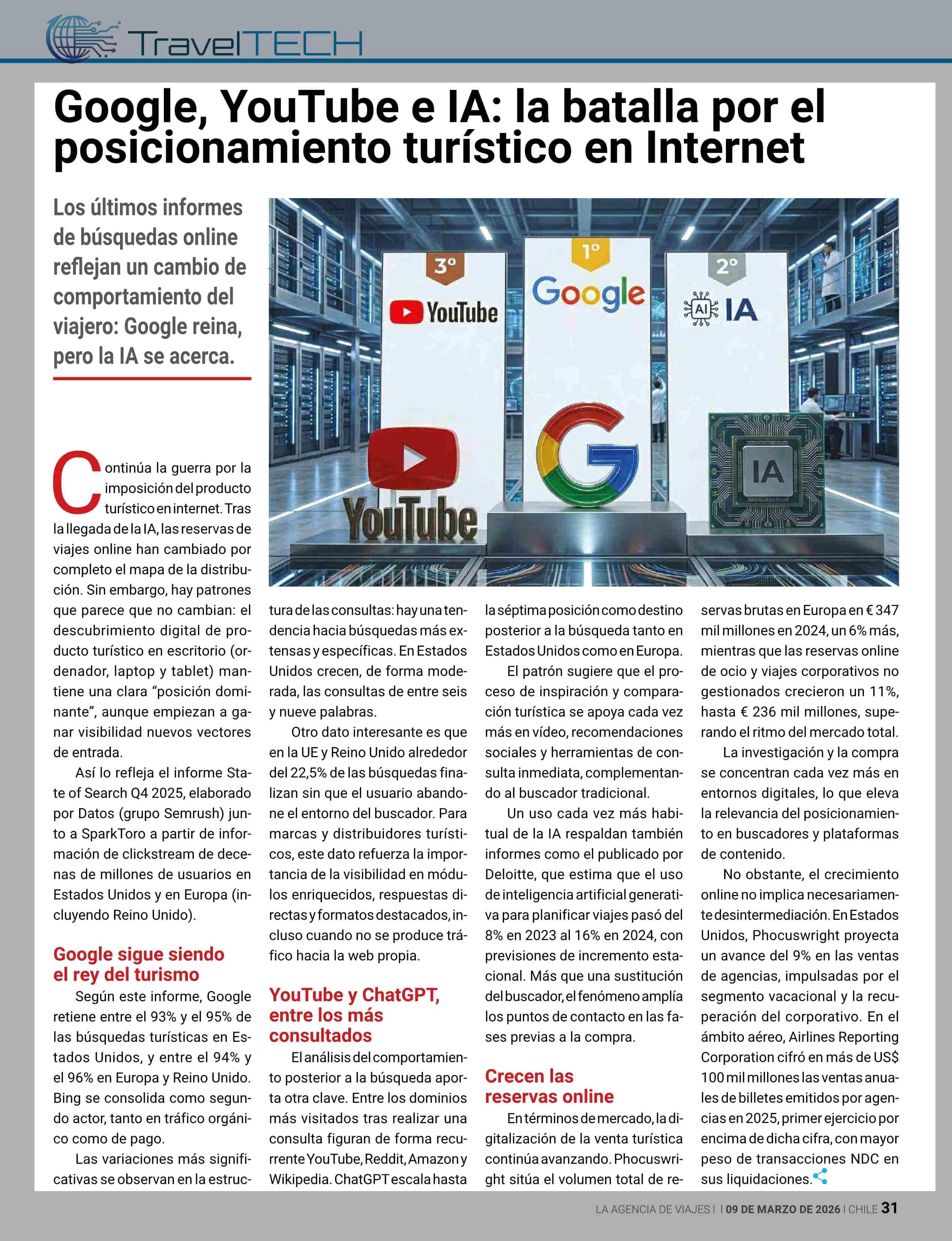 Google, YouTube e lA: la batalla por el posicionamiento turístico en Internet 09-03-2026 Revista La Agencia de Viajes |