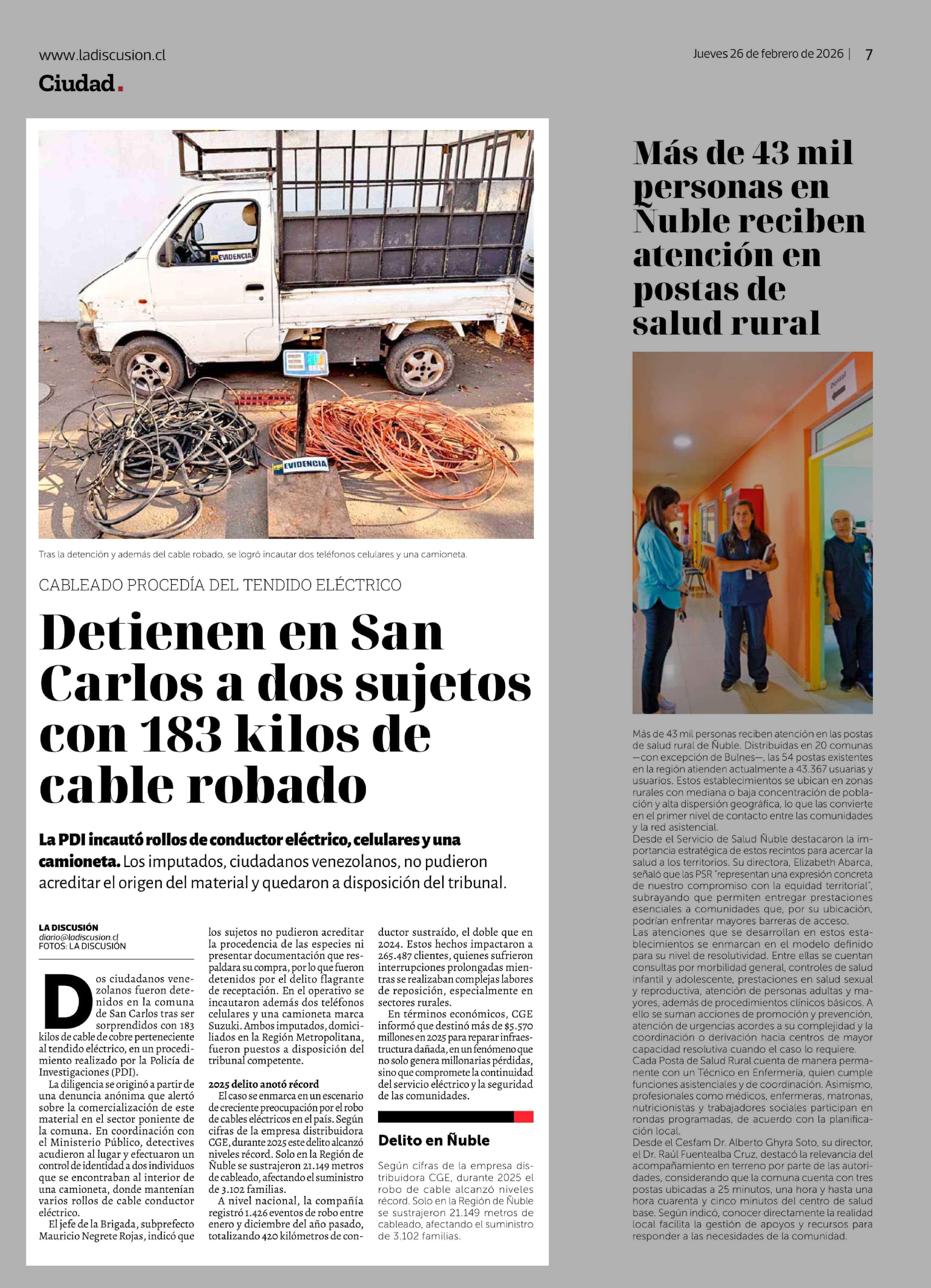Detienen en San Carlos a dos sujetos con 183 kilos de cable robado 26-02-2026 La Discusión |