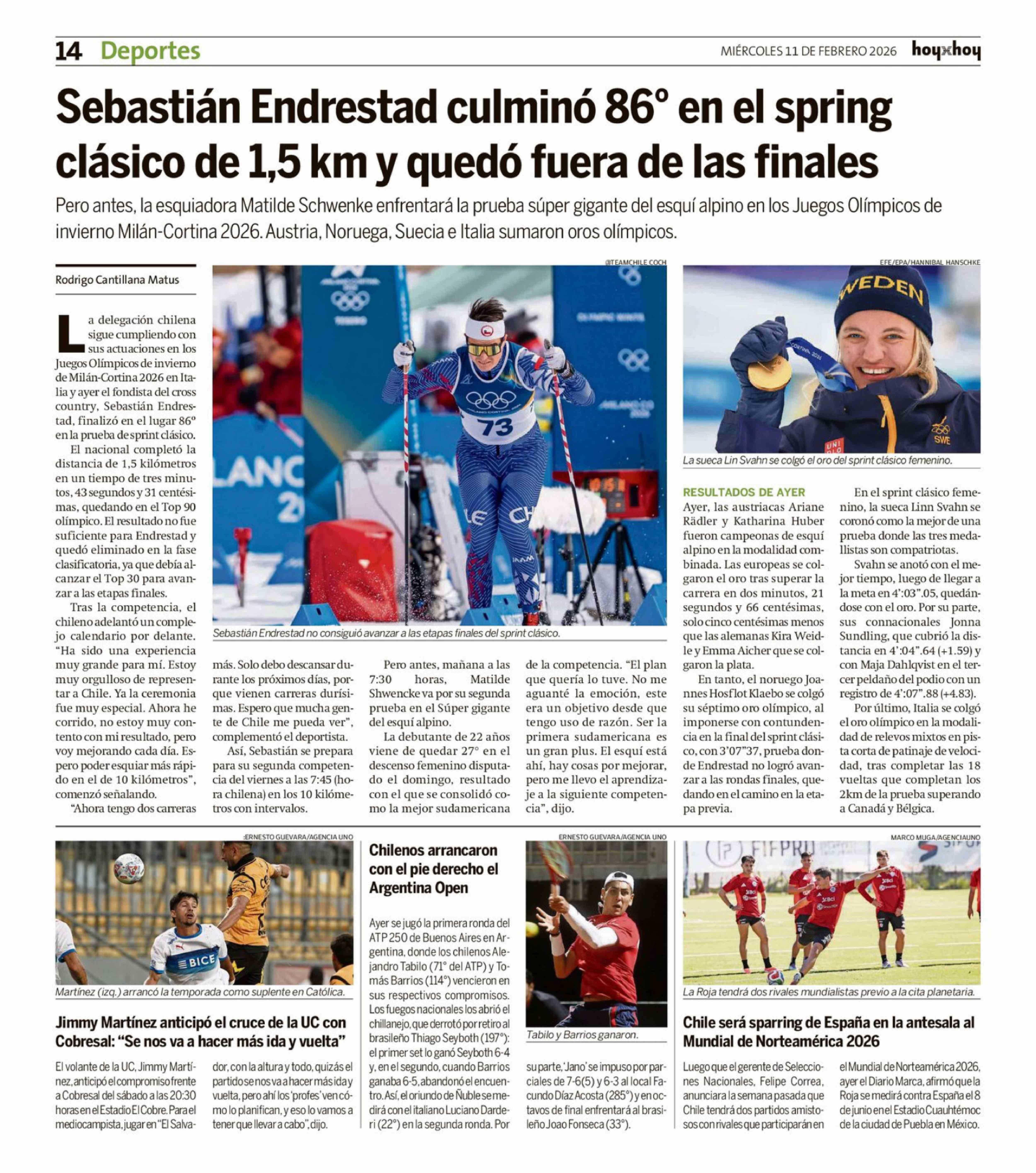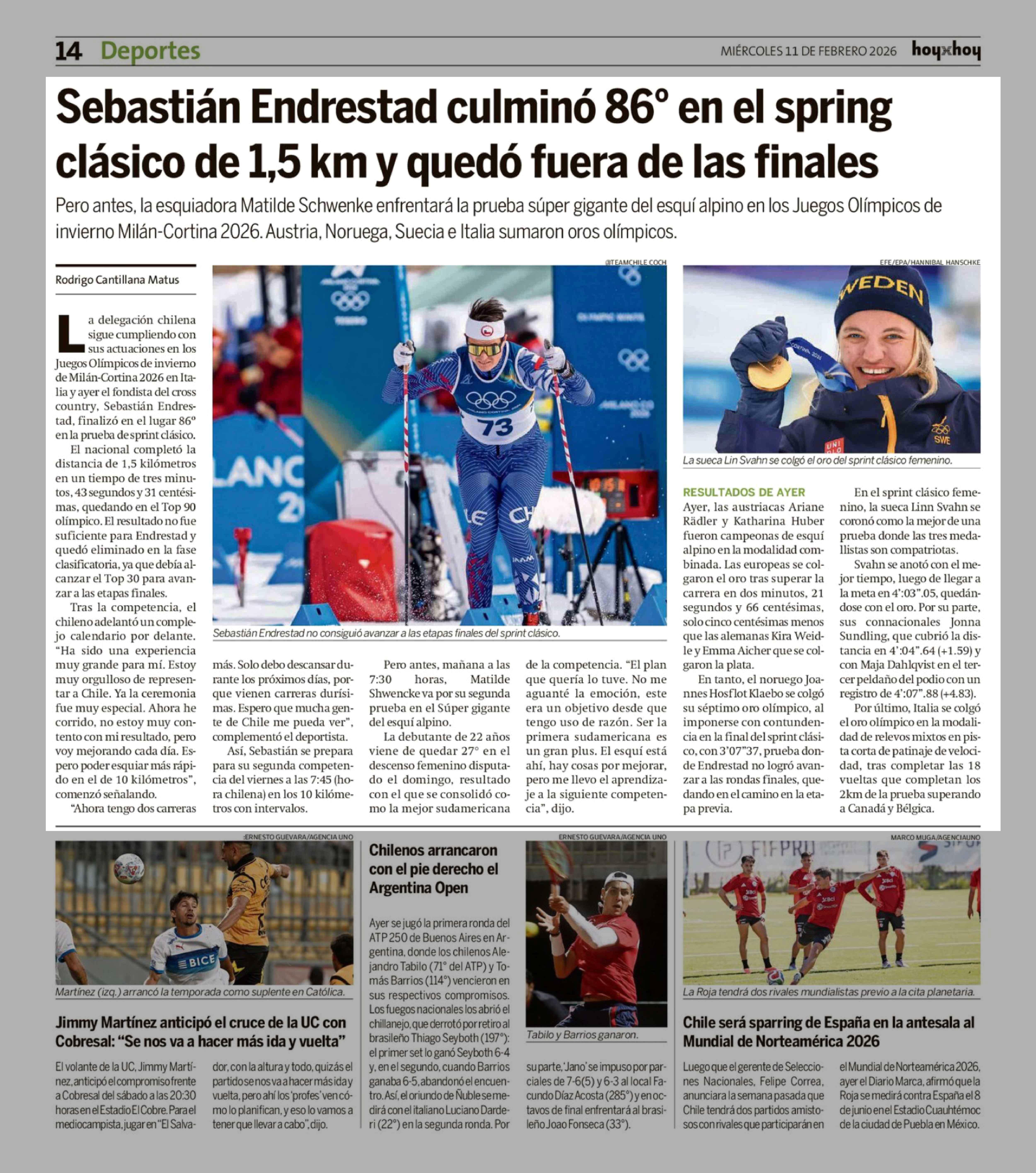 Título: Sebastián Endrestad culminó 86° en el spring clásico de 1,5 km y quedó fuera de las finales