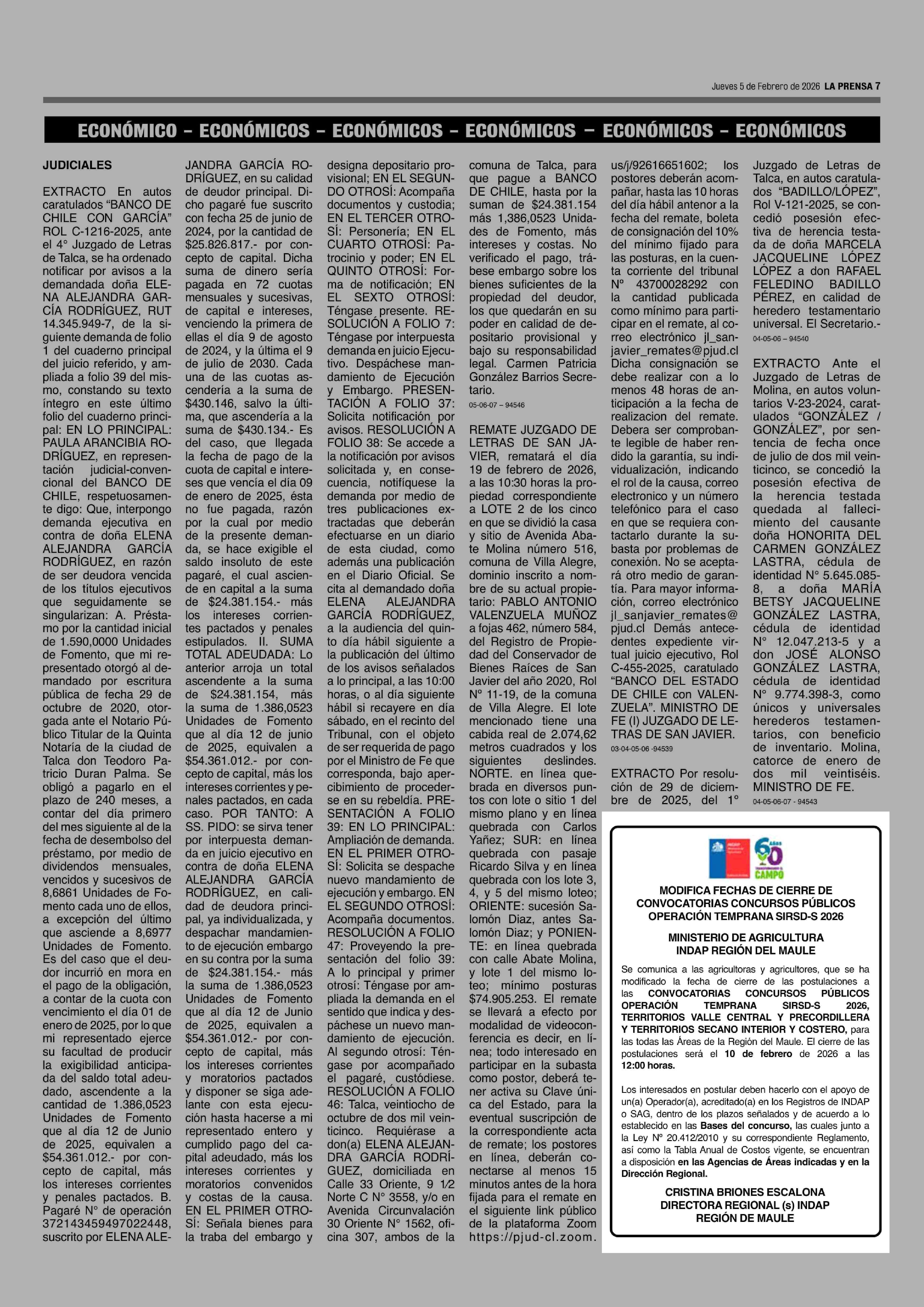 MINISTERIO DE AGRICULTURA INDAP REGIÓN DEL MAULE 05-02-2026 La Prensa de Curicó |