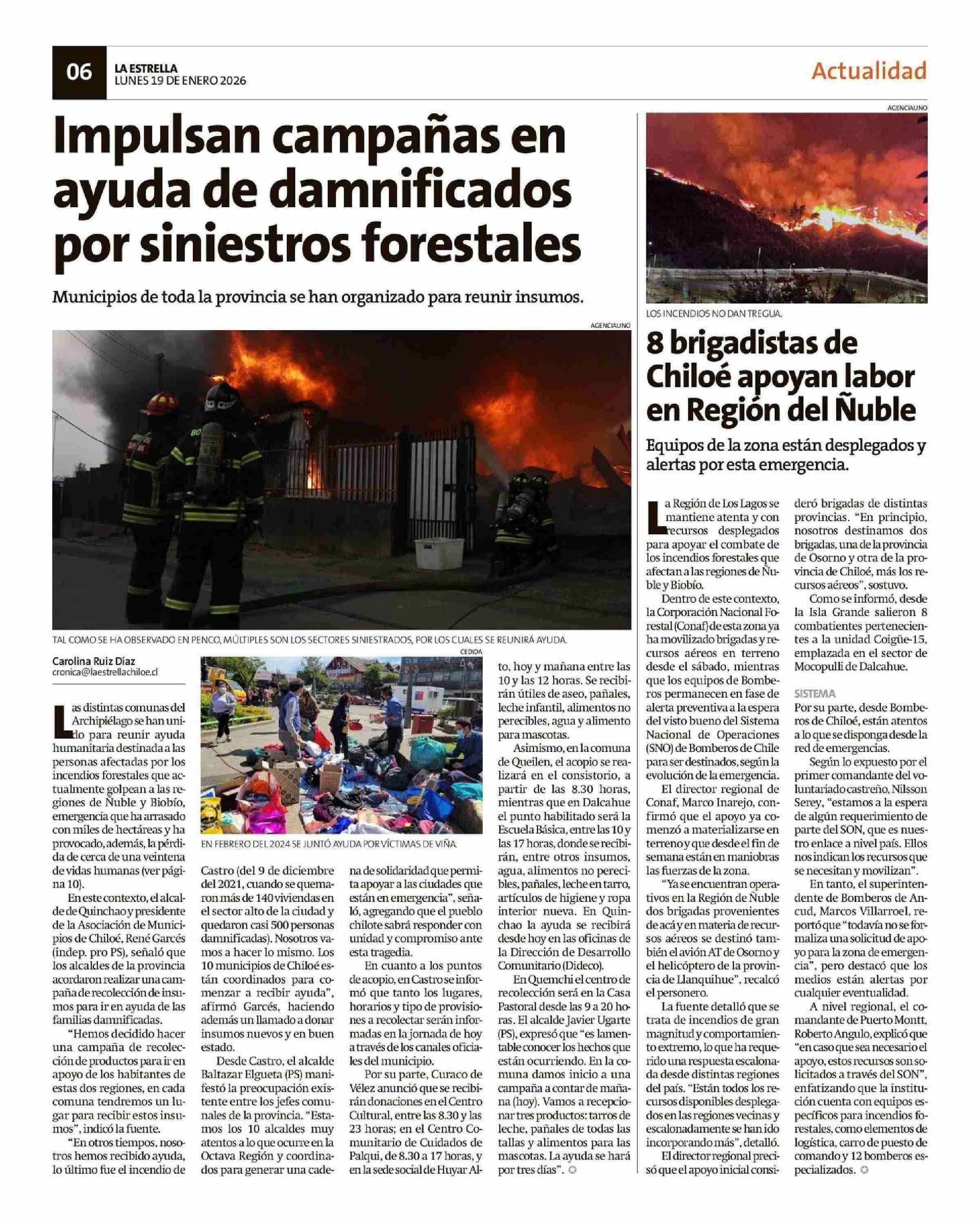8 Brigadistas de Chiloé apoyan labor en Región del Ñuble 19-01-2026 La Estrella de Chiloé |