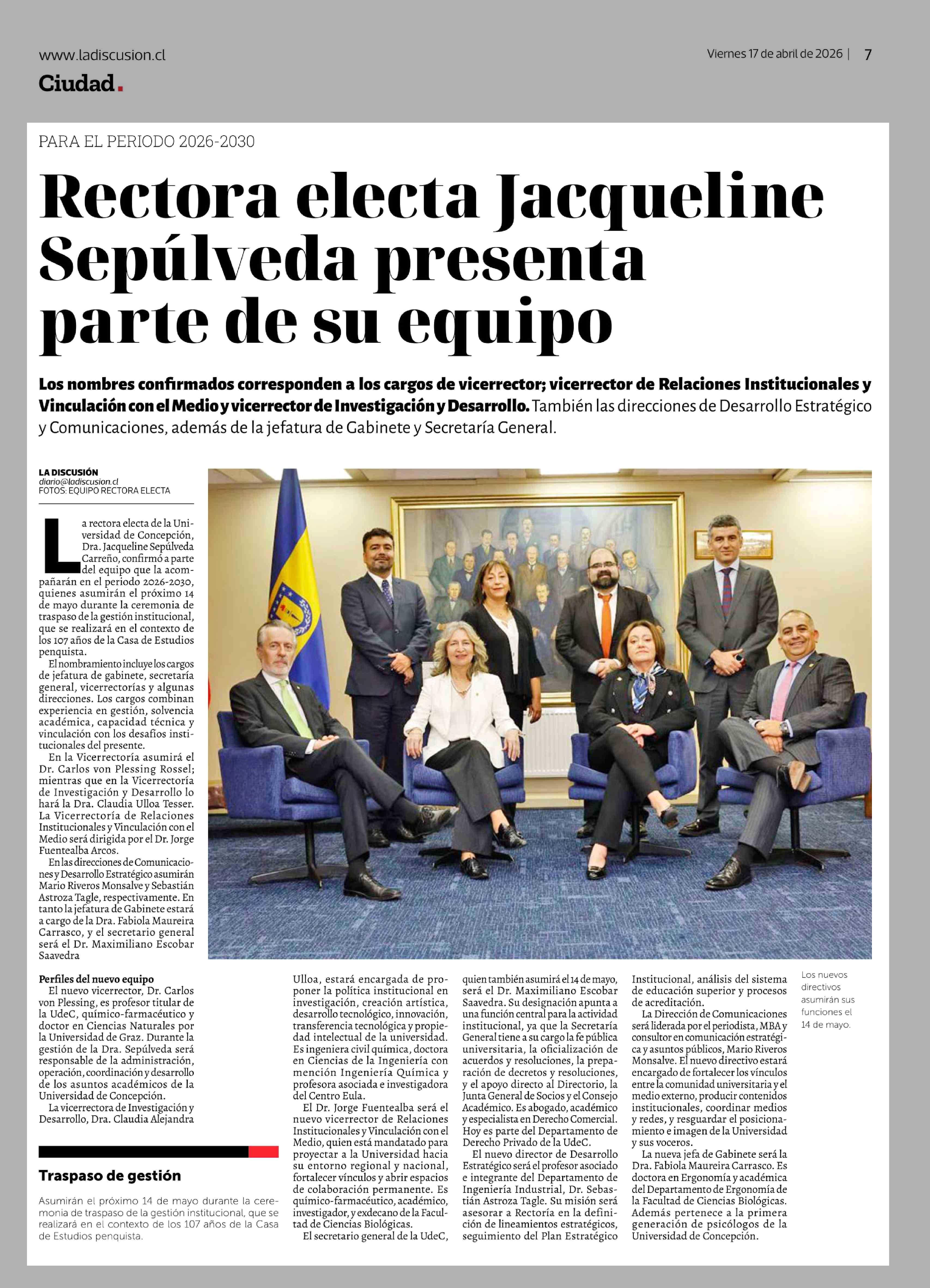 Rectora electa Jacqueline Sepúlveda presenta parte de su equipo 17-04-2026 La Discusión |