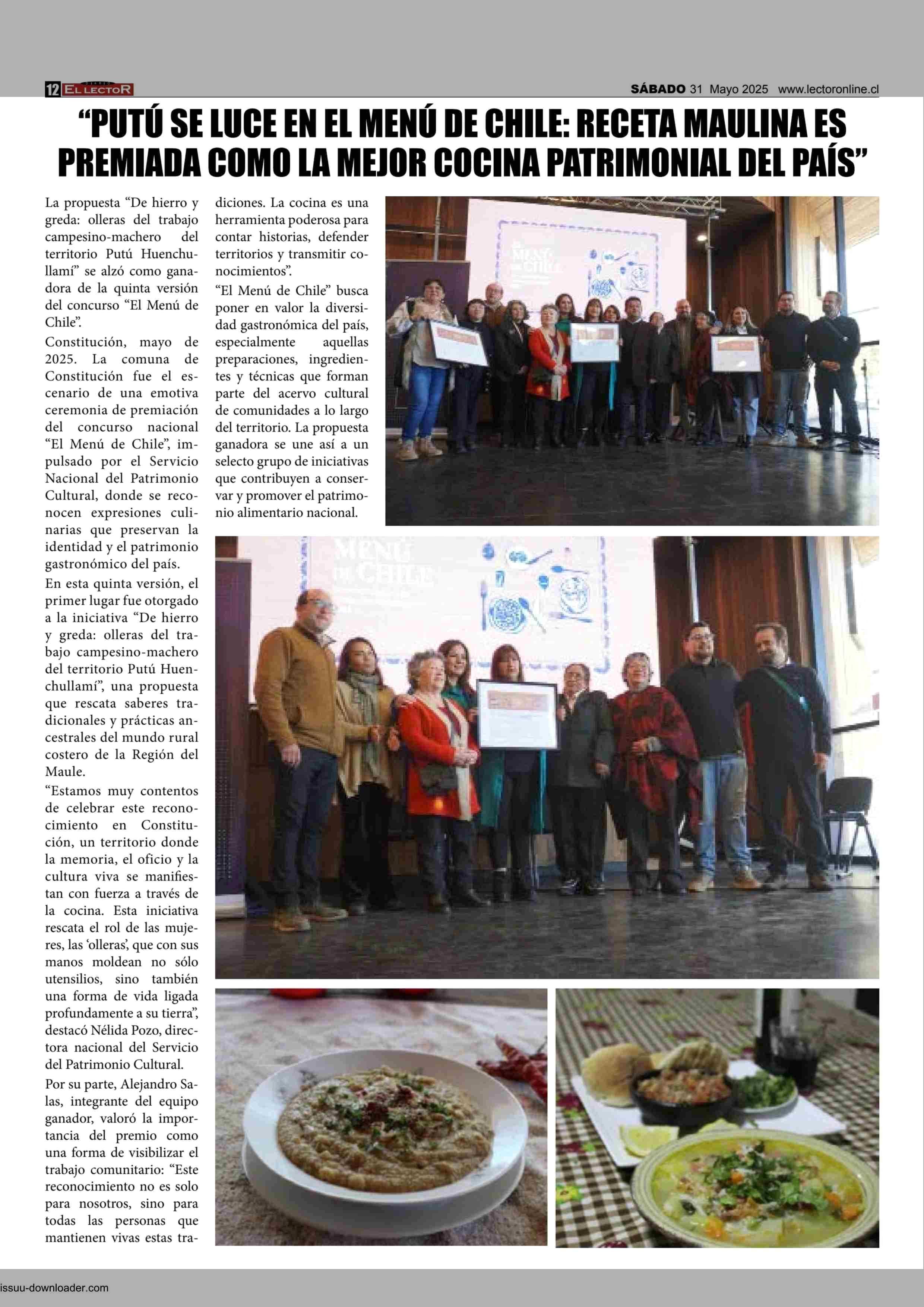 “PUTÓ SE LUCE EN El MENÚ DE CHILE: RECETA MAULINA ES PREMIADA COMO LA MEJOR COCINA PATRIMONIAL DEL PAÍS” 31-05-2025 El Lector |