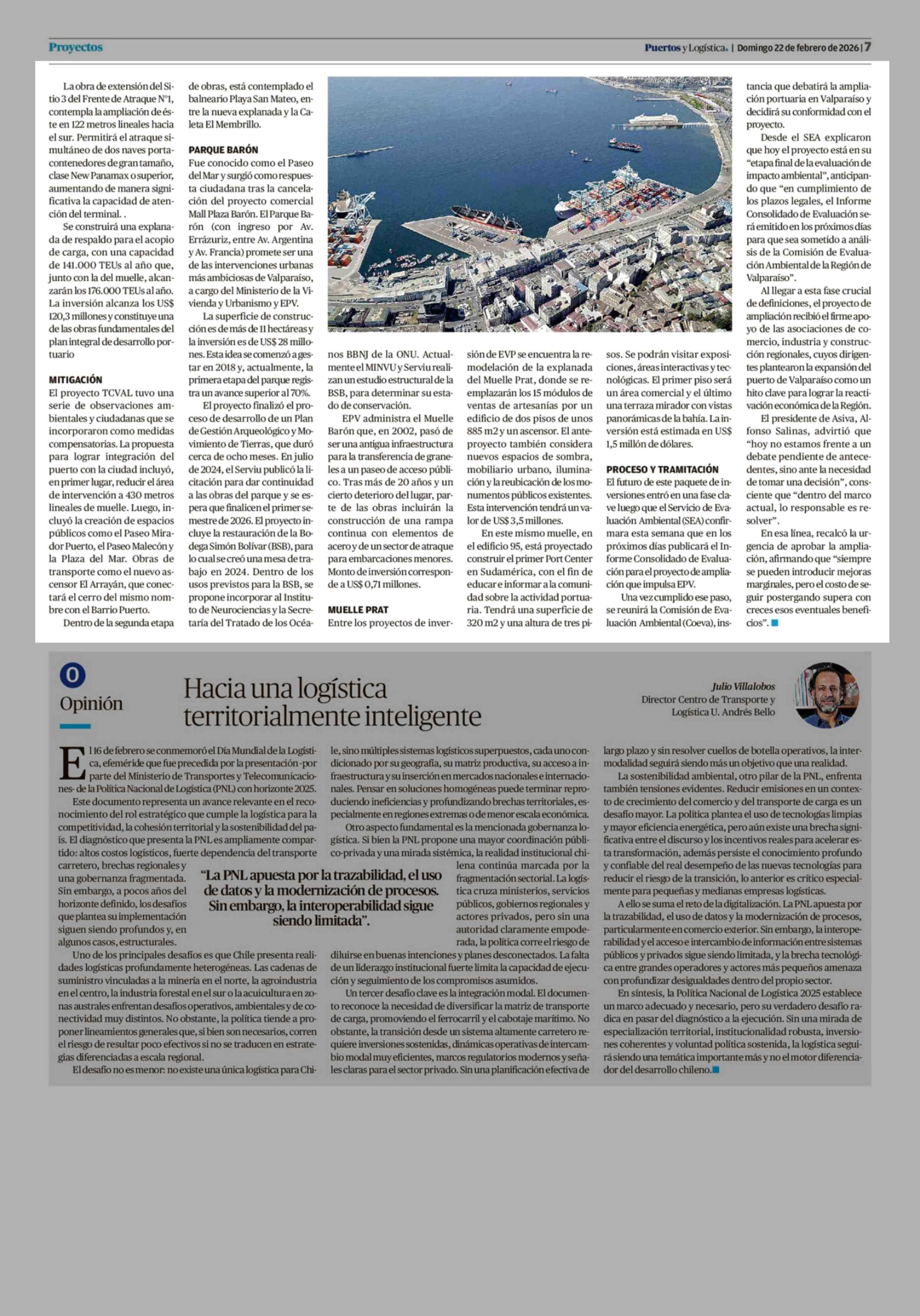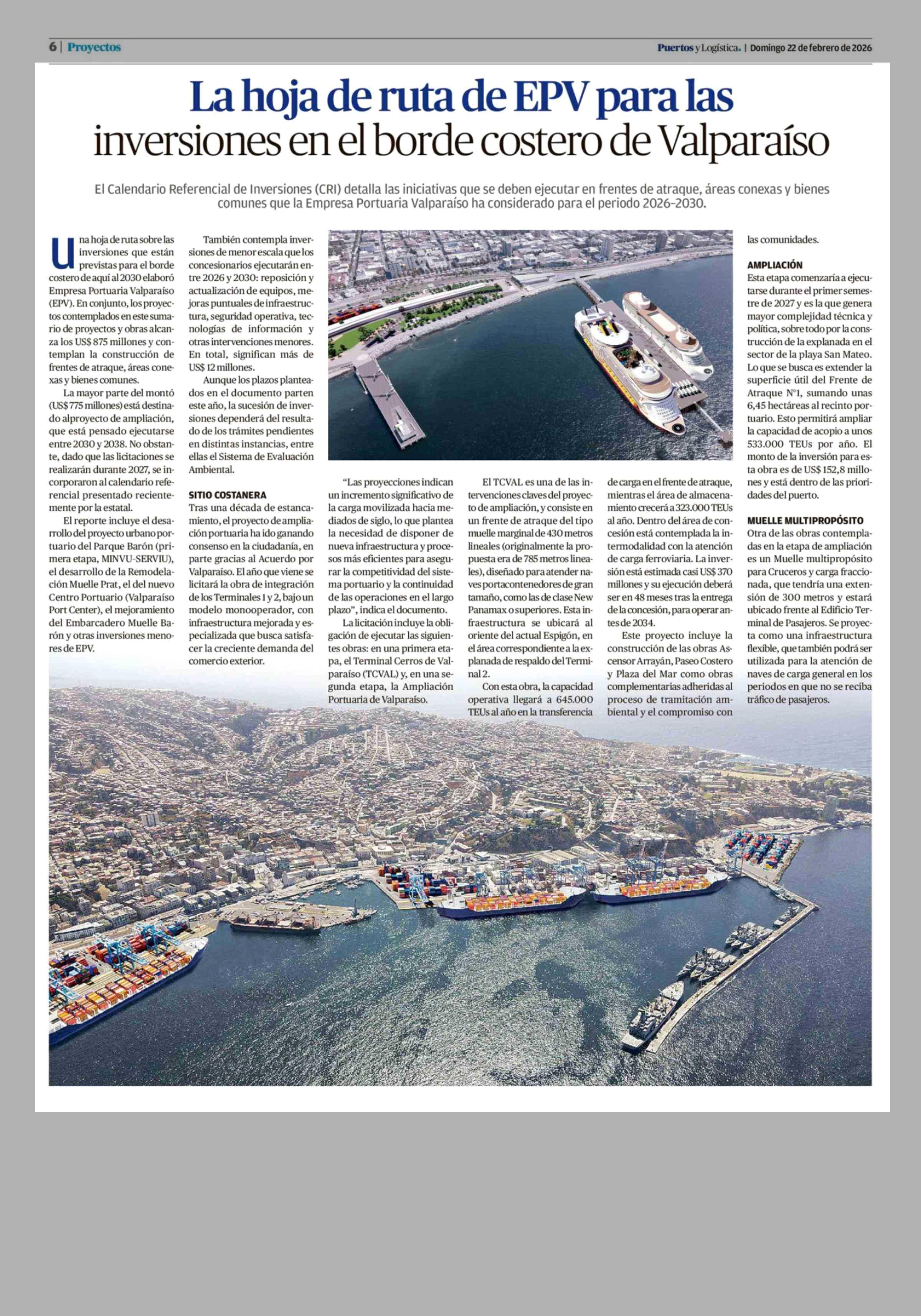 La hoja de ruta de EPV para las inversiones en el borde costero de Valparaíso 22-02-2026 El Mercurio de Valparaíso |