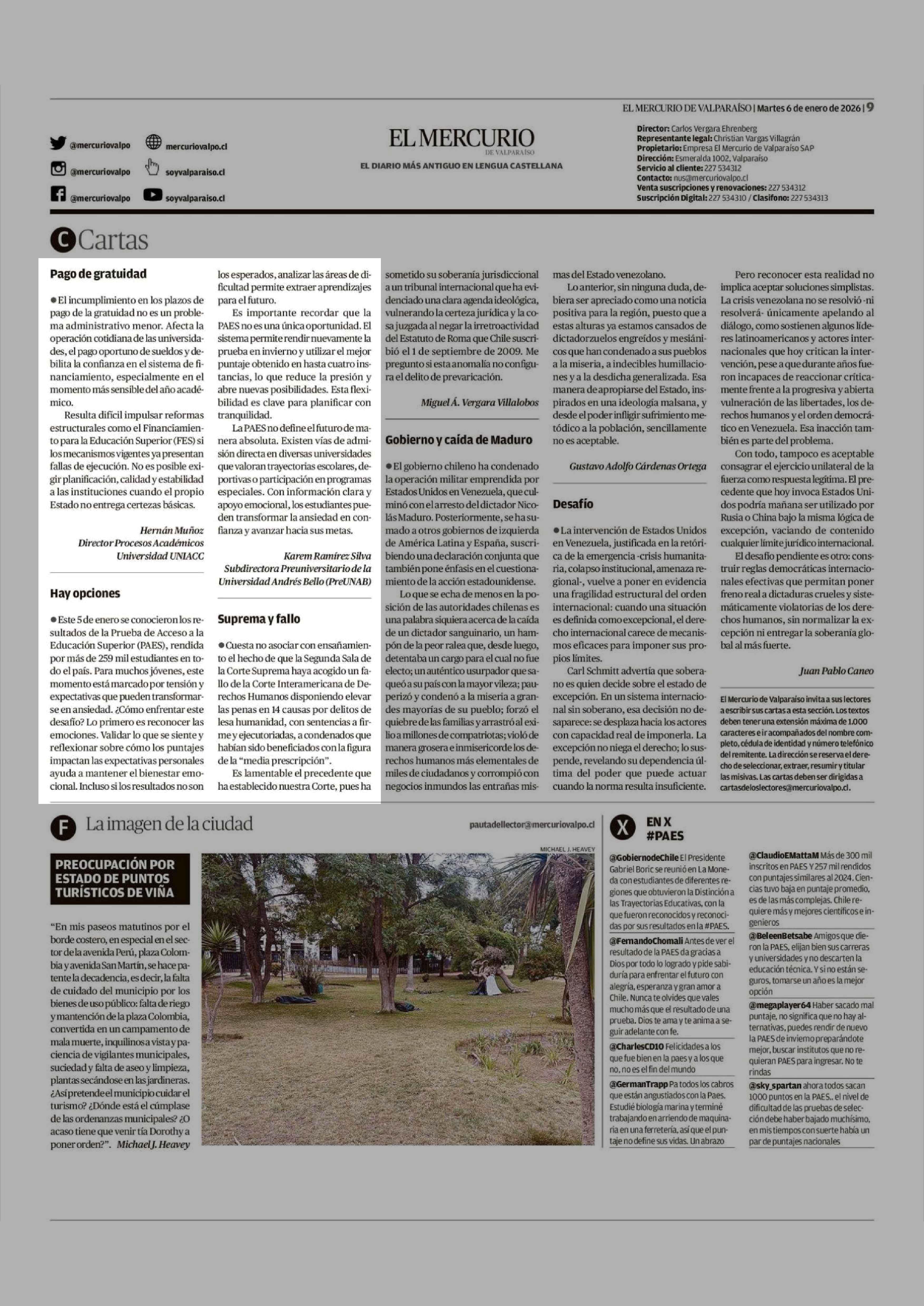 Cartas: Hay opciones 06-01-2026 El Mercurio de Valparaíso |