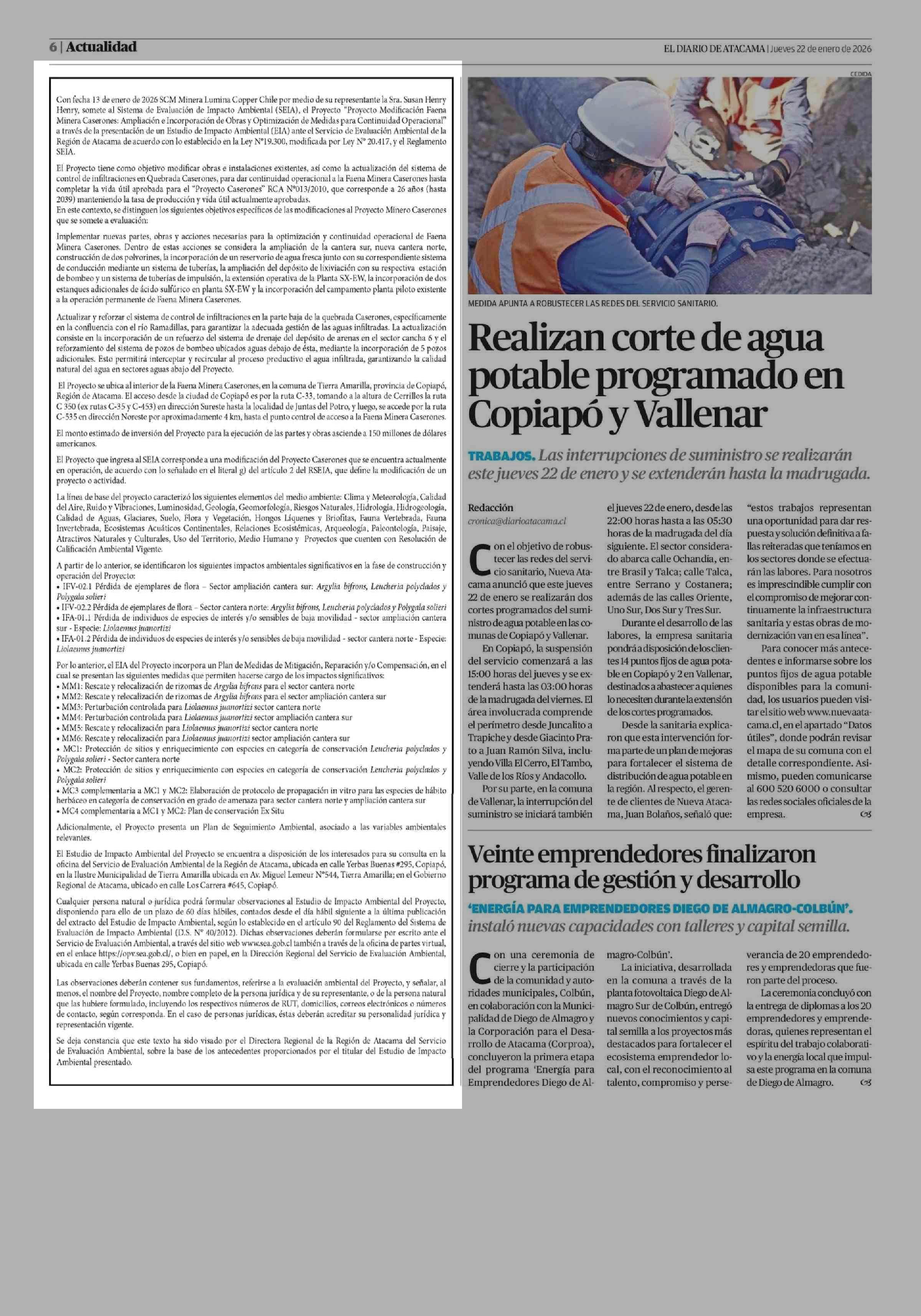 Fecha: 22-01-2026 Sector: Noticia general Región: Región de Atacama