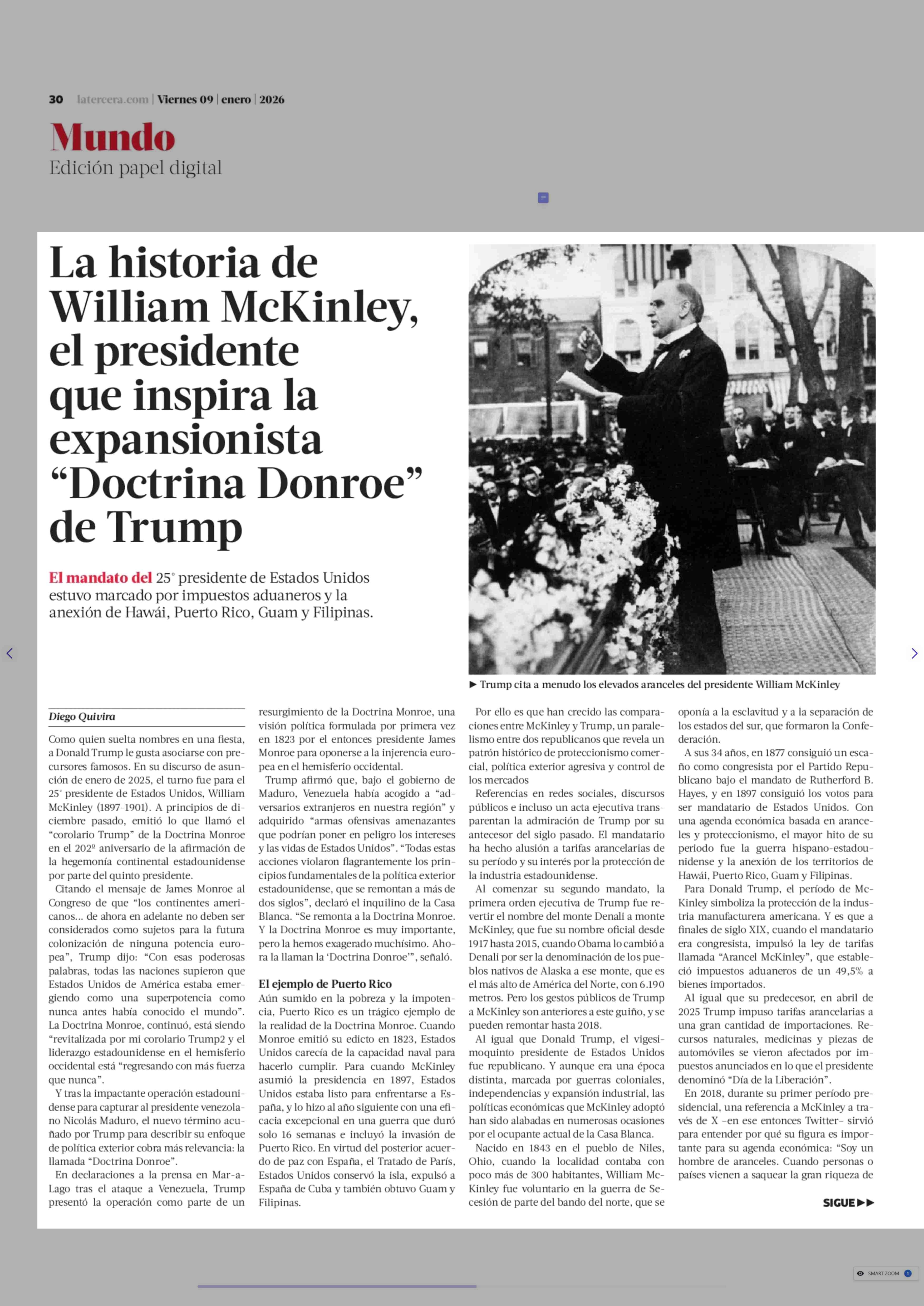 Título: La historia de William Mckinley, el presidente que inspira la expansionista "Doctrina Donroe" de Trump