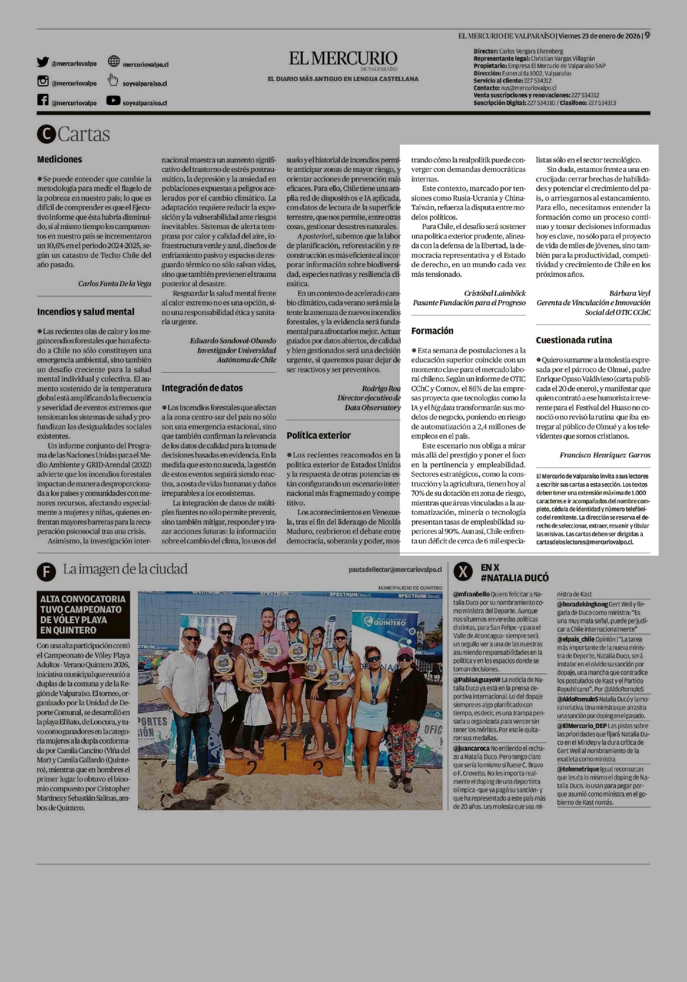 Cartas: Formación 23-01-2026 El Mercurio de Valparaíso |