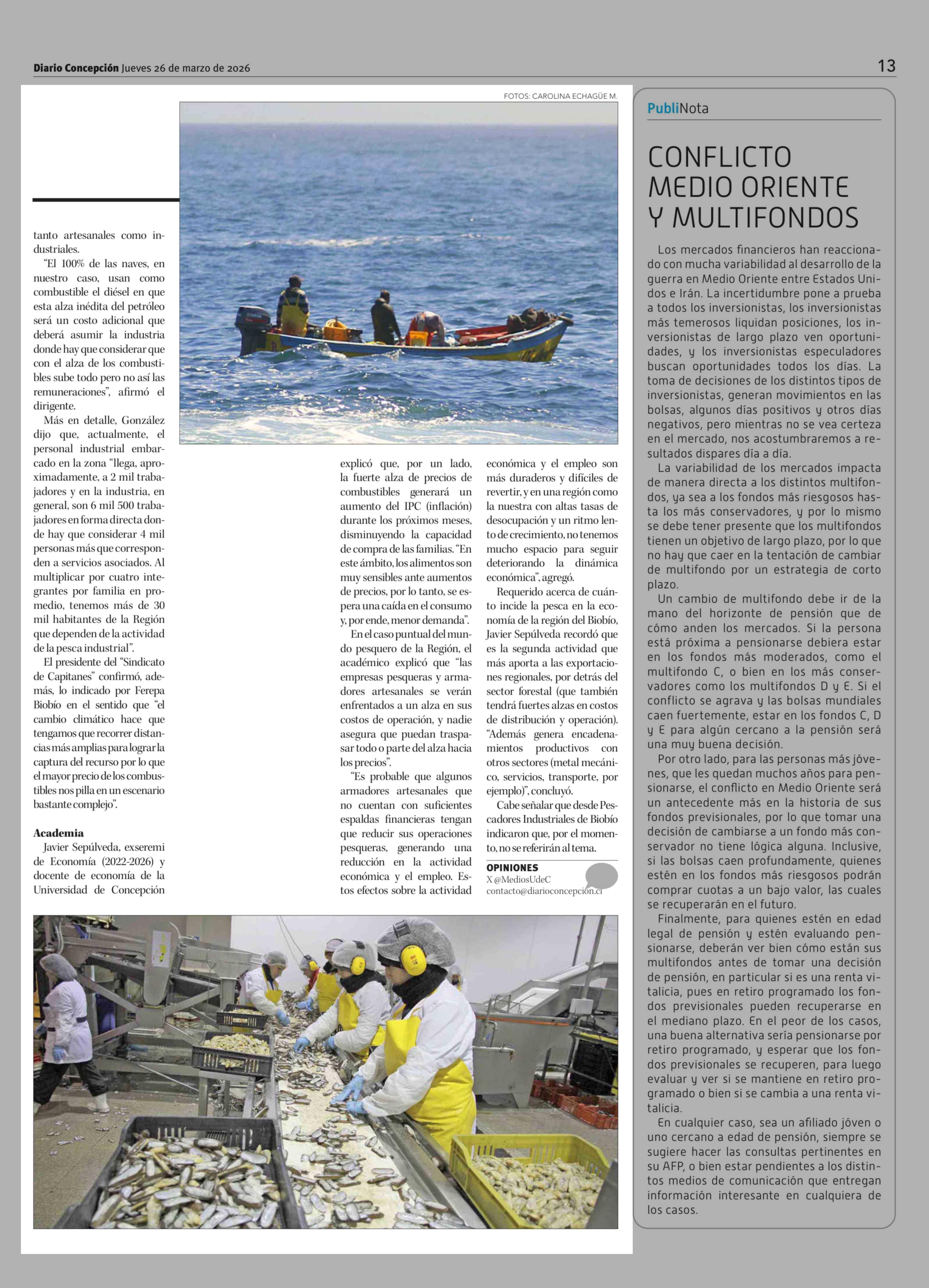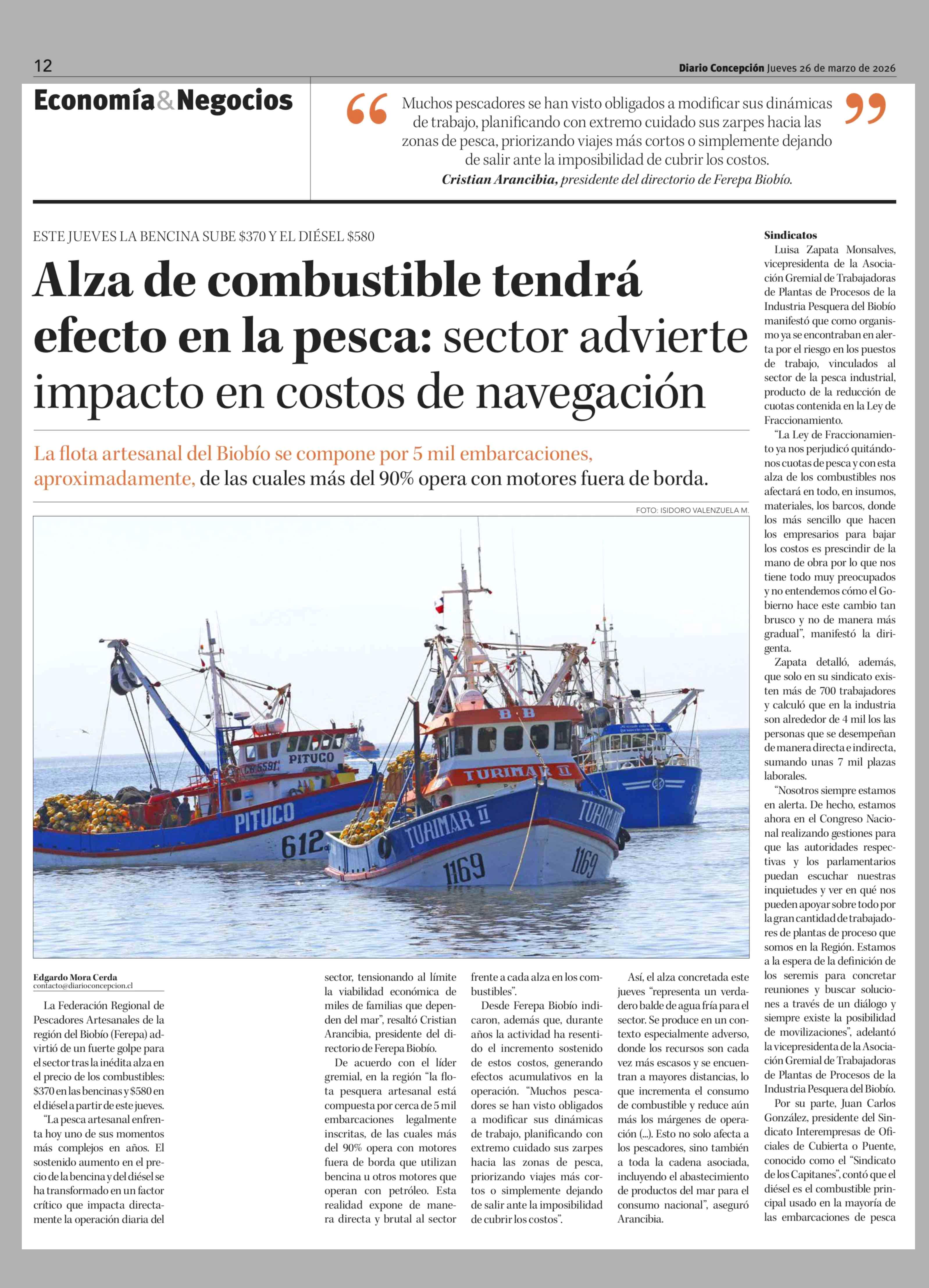 Alza de combustible tendrá efecto en la pesca: sector advierte impacto en costos de navegación 26-03-2026 Diario Concepción |