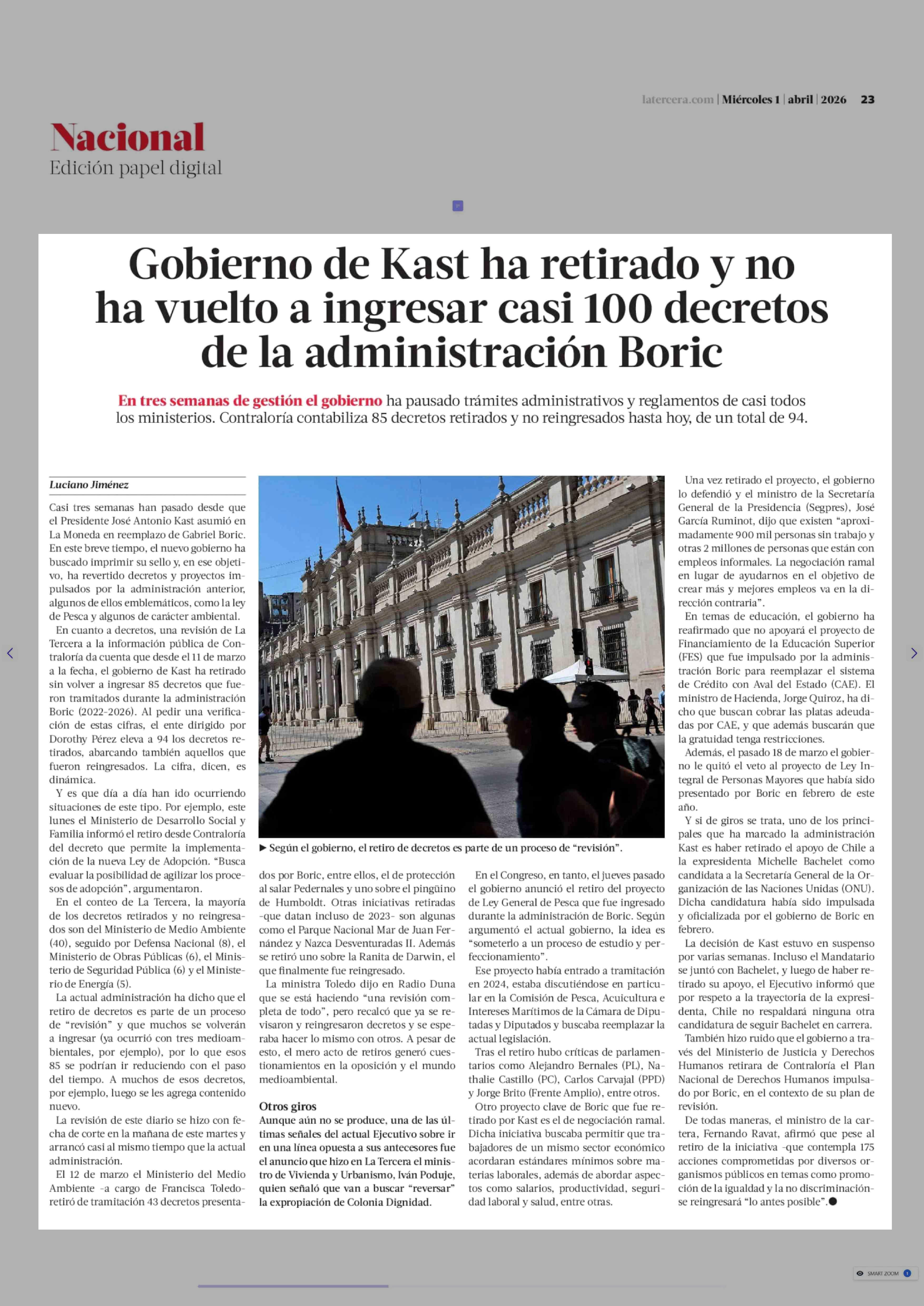 Título: Gobierno de Kast ha retirado y no ha vuelto a ingresar casi 100 decretos de la administración Boric