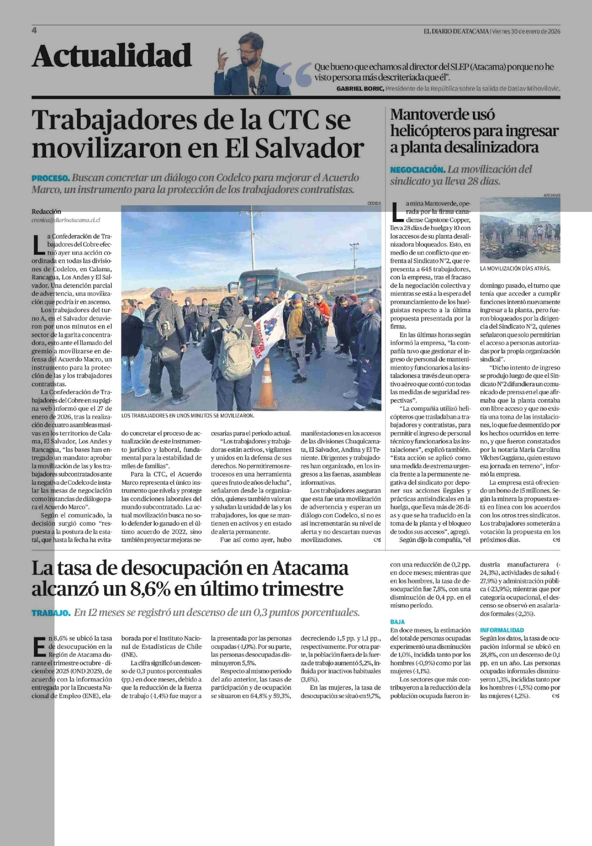 | Fecha: | 30-01-2026 | Sector: | Noticia general | Región: | Región de Atacama |
