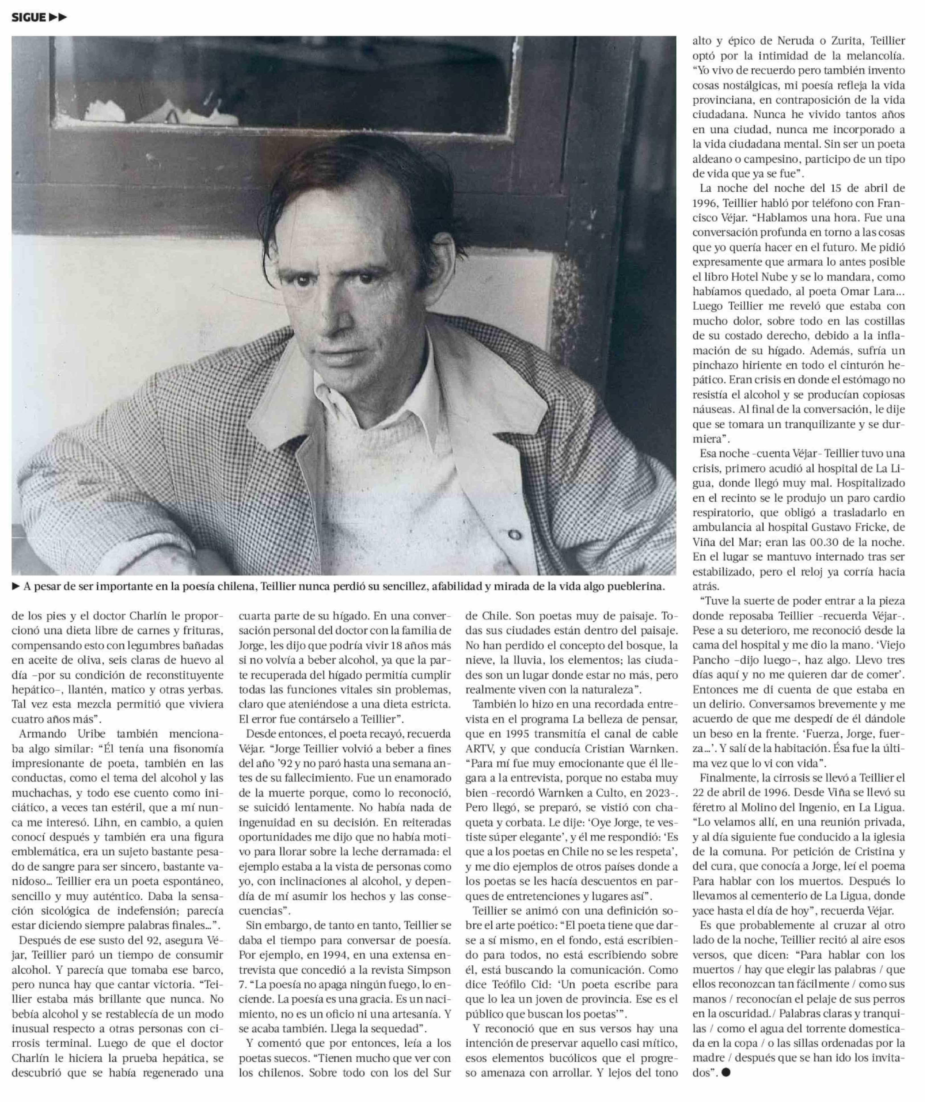 Un enamorado de la muerte: los últimos días de Jorge Teillier 23-04-2026 La Tercera |