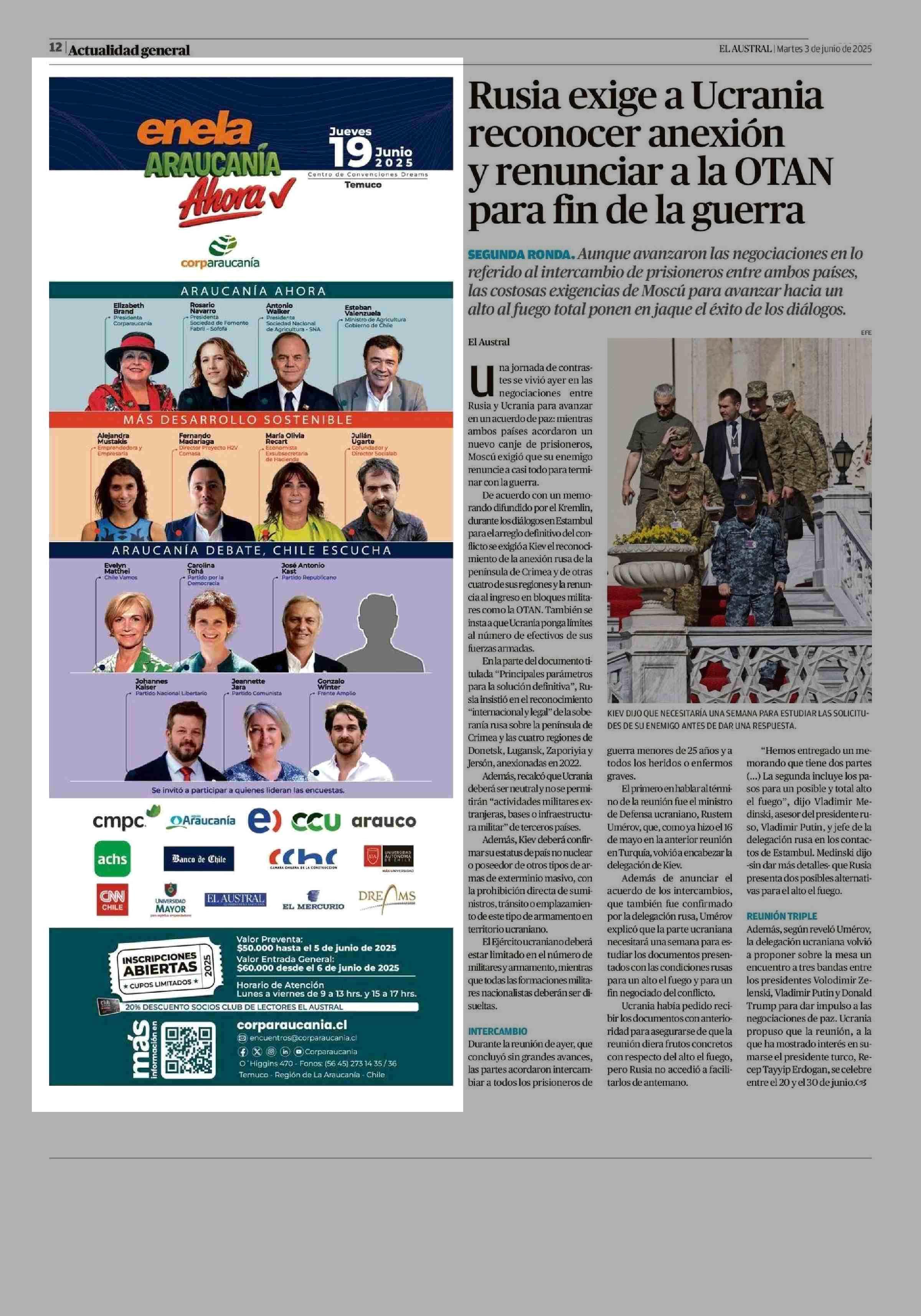 Fuente: El Austral de la Araucanía (El Austral de la Araucanía) Página(s): 12