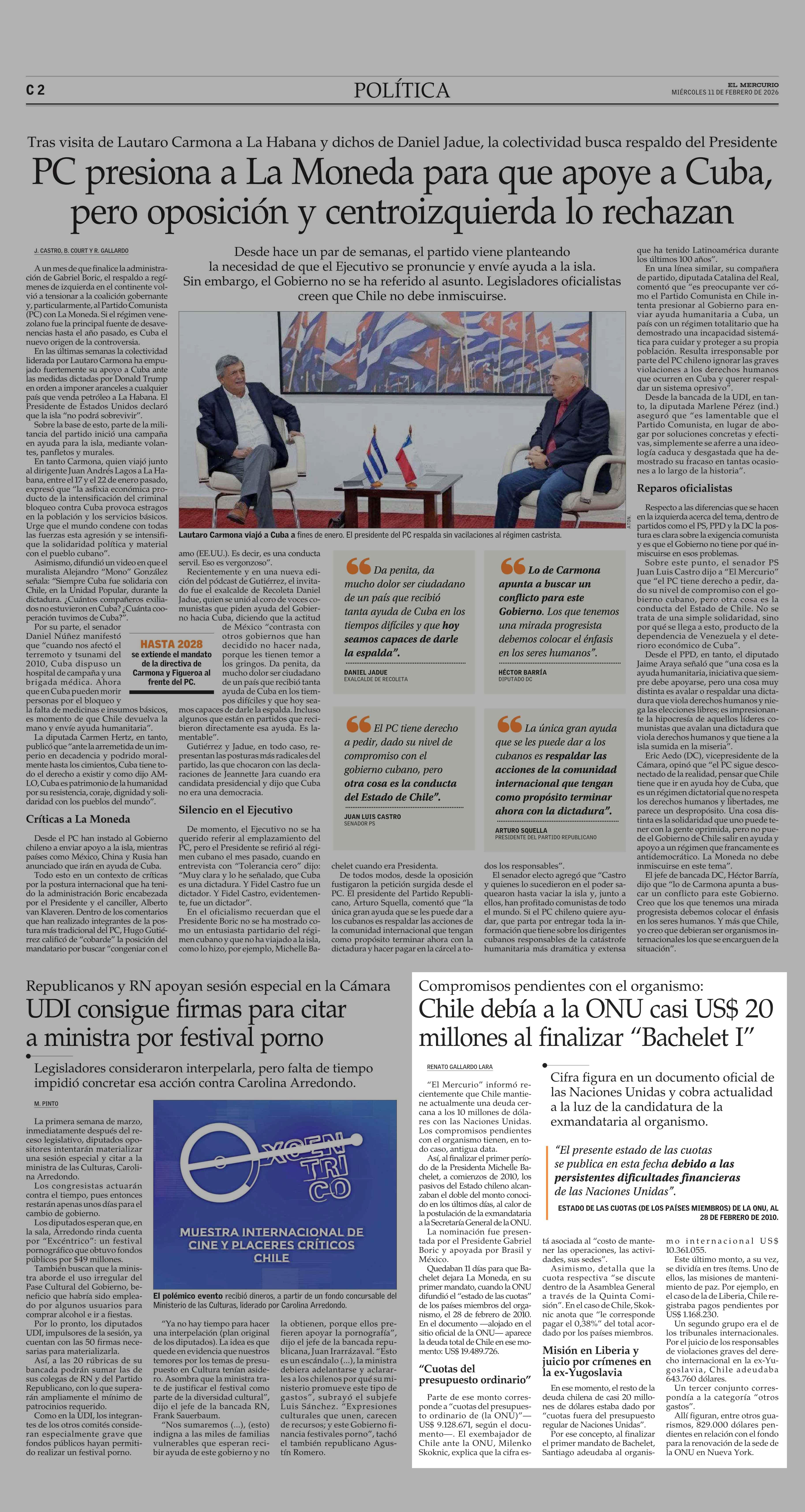 Chile debía a la ONU casi US$ 20 millones al finalizar “Bachelet I” 11-02-2026 El Mercurio |