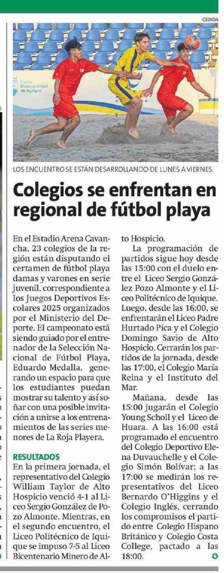 Colegios se enfrentan en regional de fútbol playa 05-06-2025 La Estrella de Iquique |
