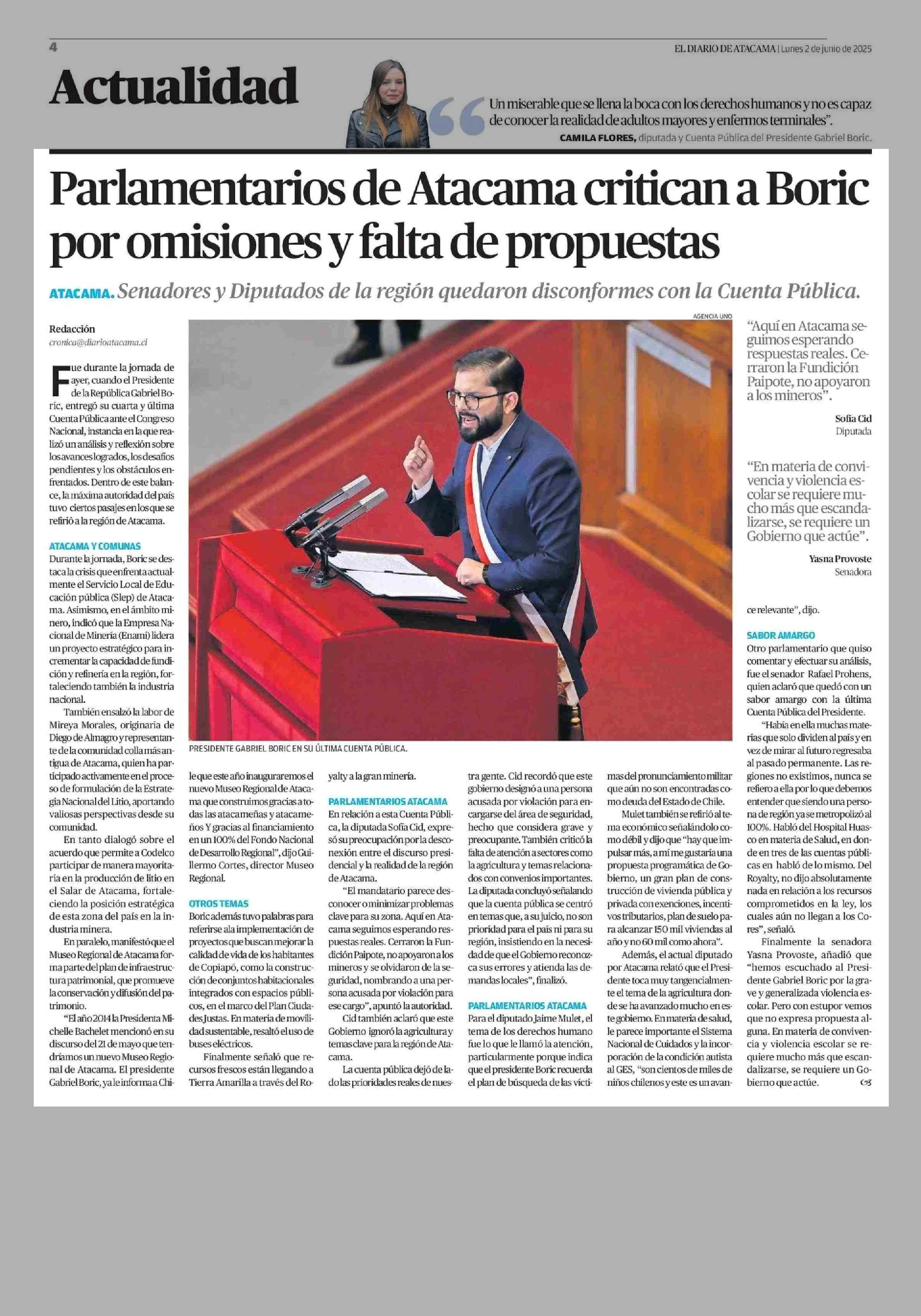 Título: Parlamentarios de Atacama critican a Boric por omisiones y falta de propuestas