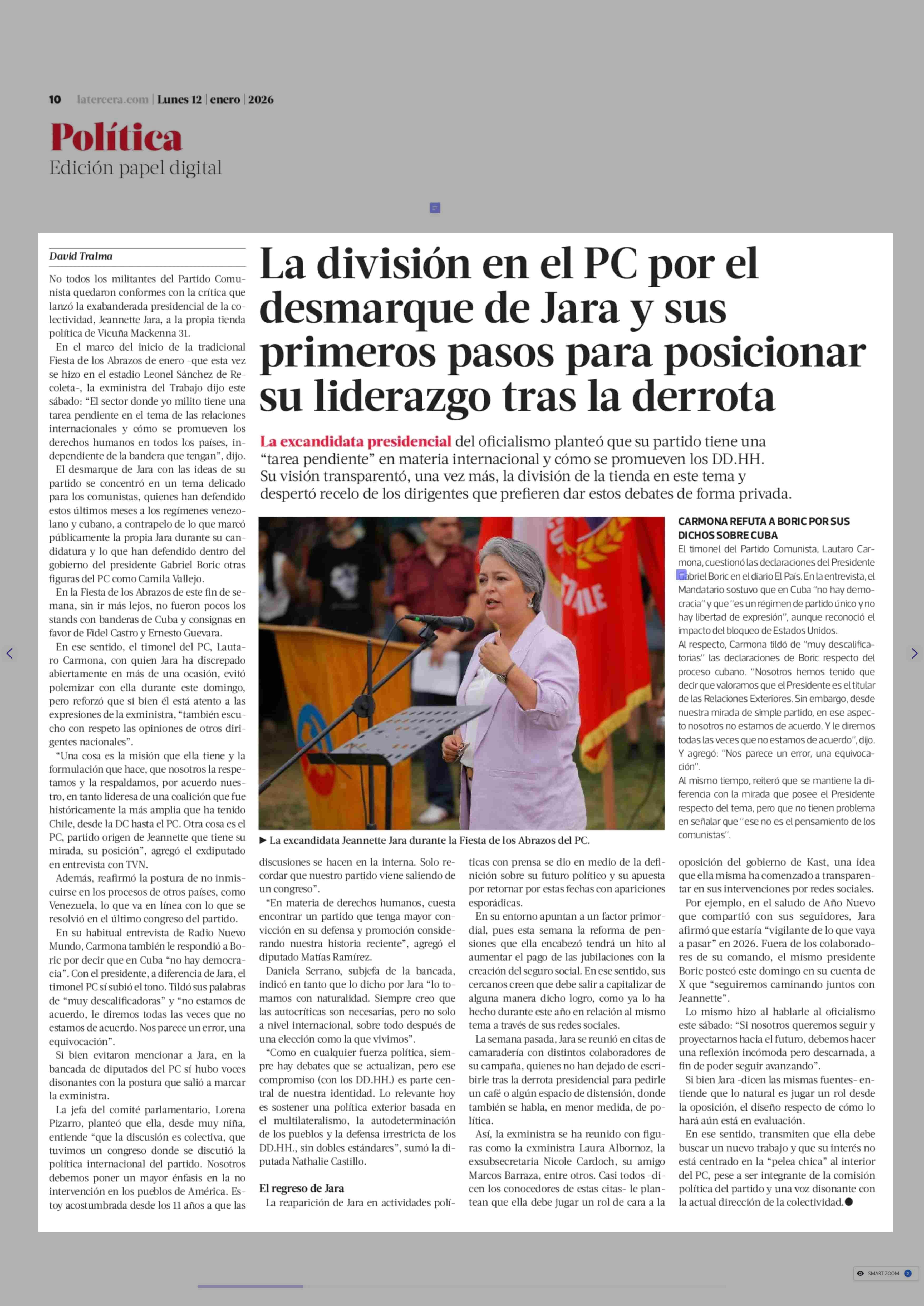 Título: La división en el PC por el desmarque de Jara y sus primeros pasos para posicionar su liderazgo tras la derrota