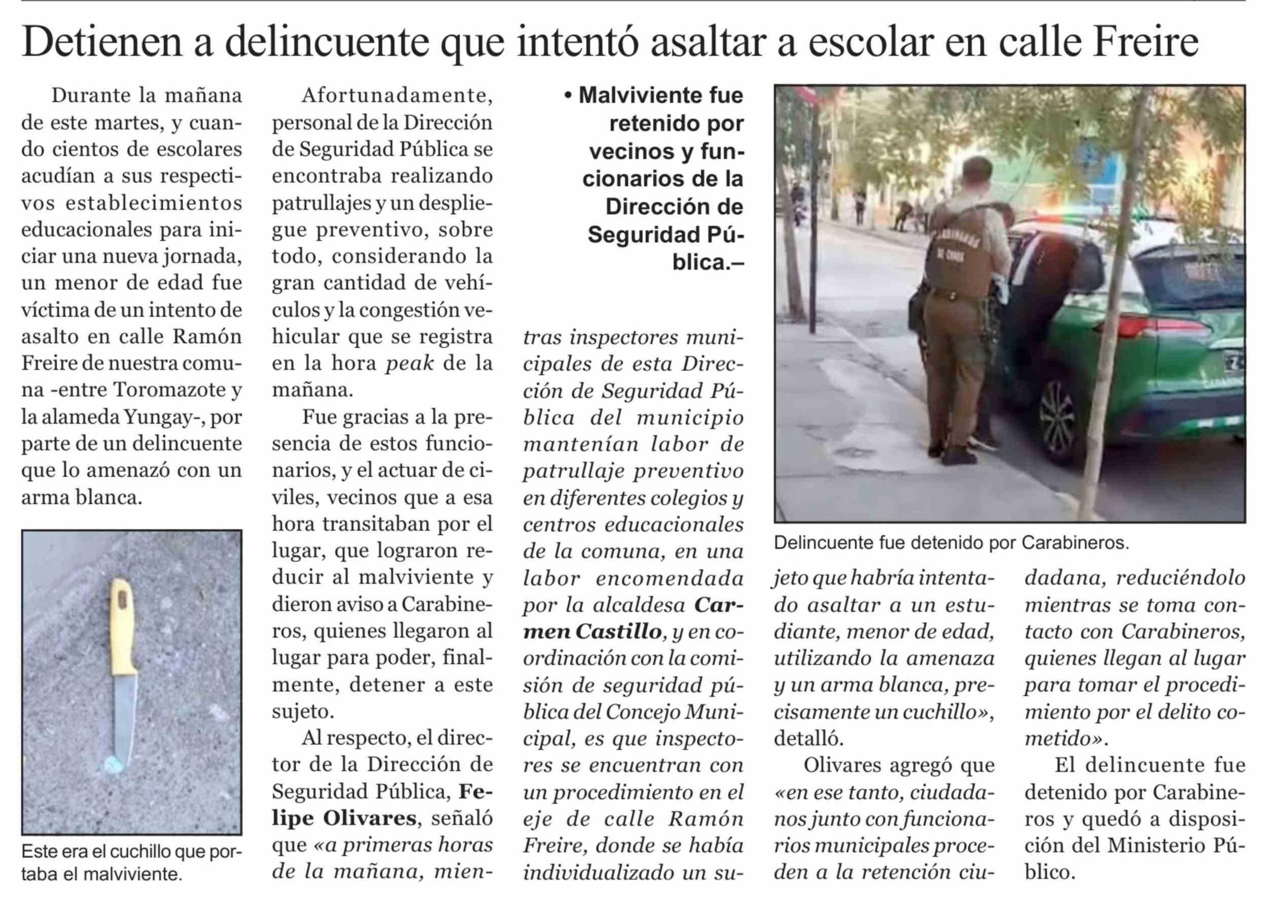 | Título: | Detienen a delincuente que intentó asaltar a escolar en calle Freire |