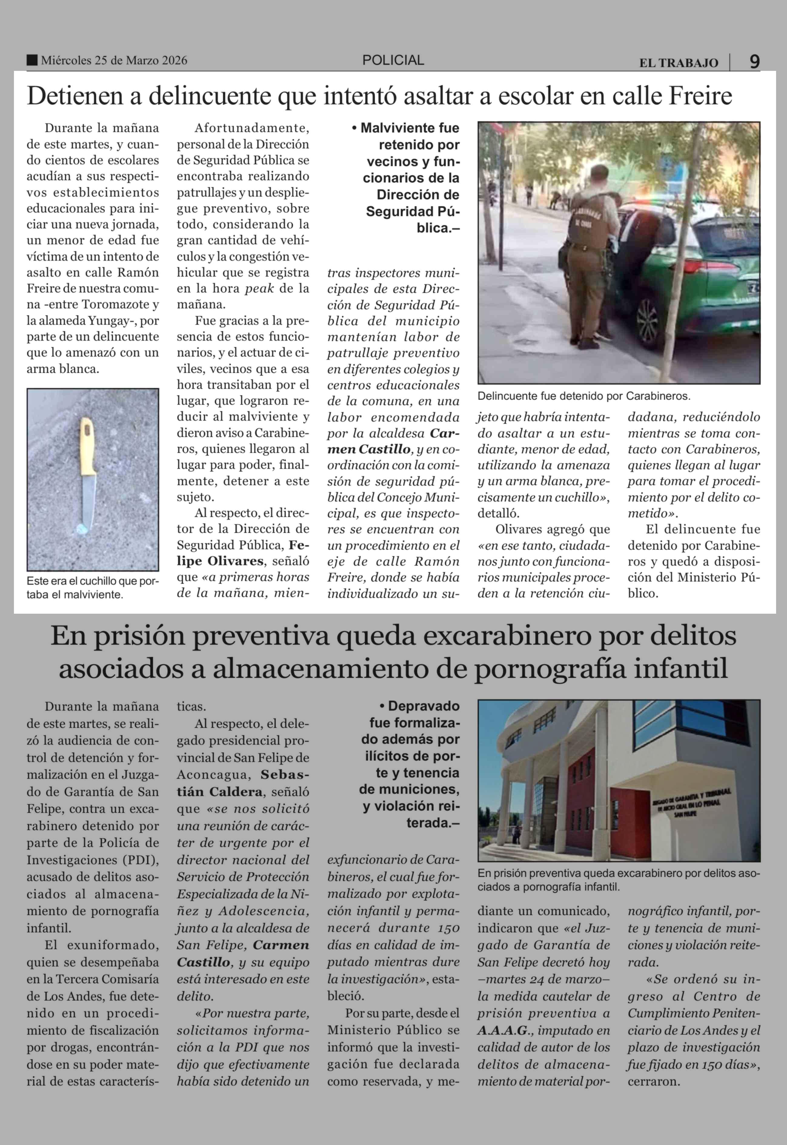 Detienen a delincuente que intentó asaltar a escolar en calle Freire 25-03-2026 El Trabajo |