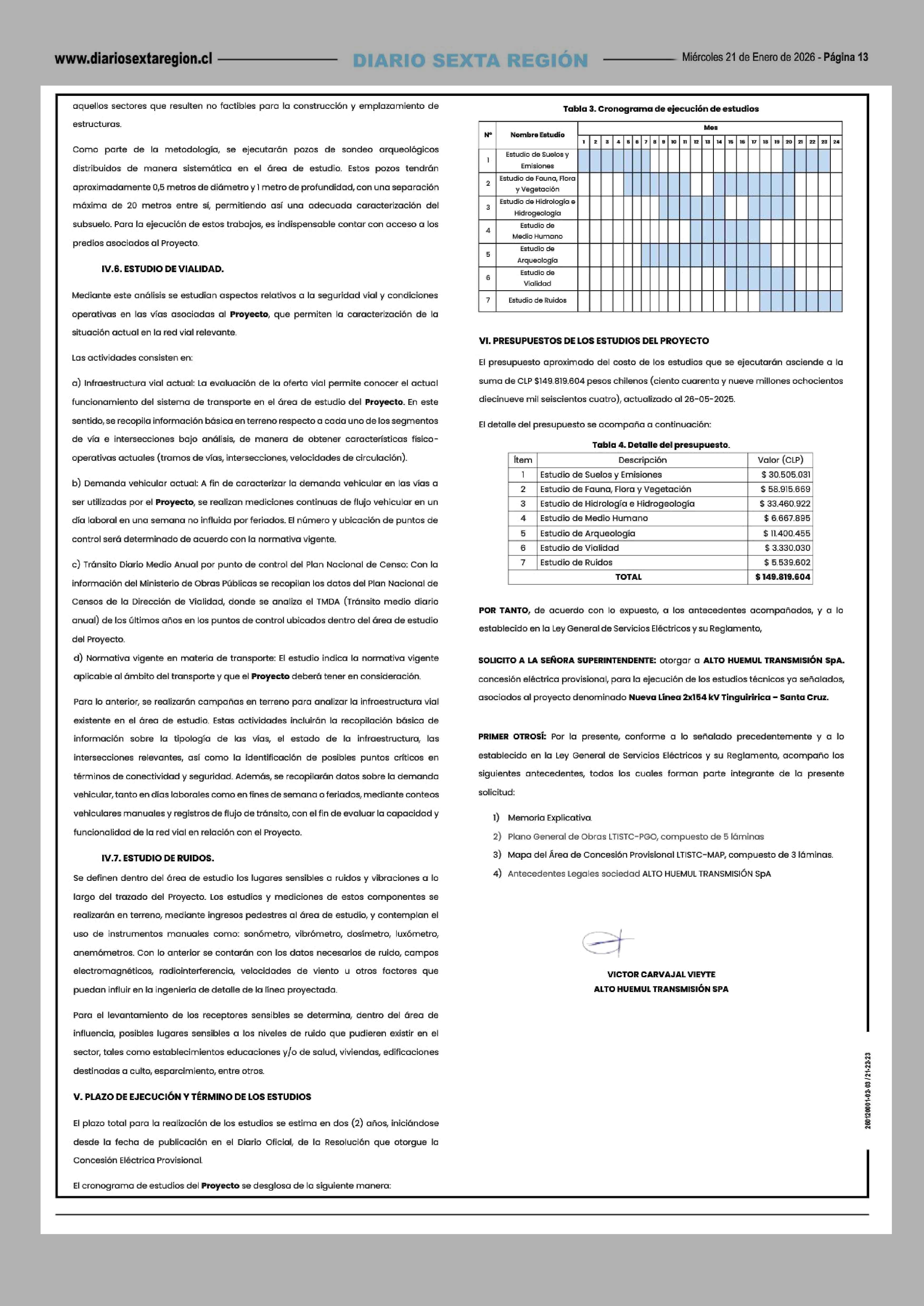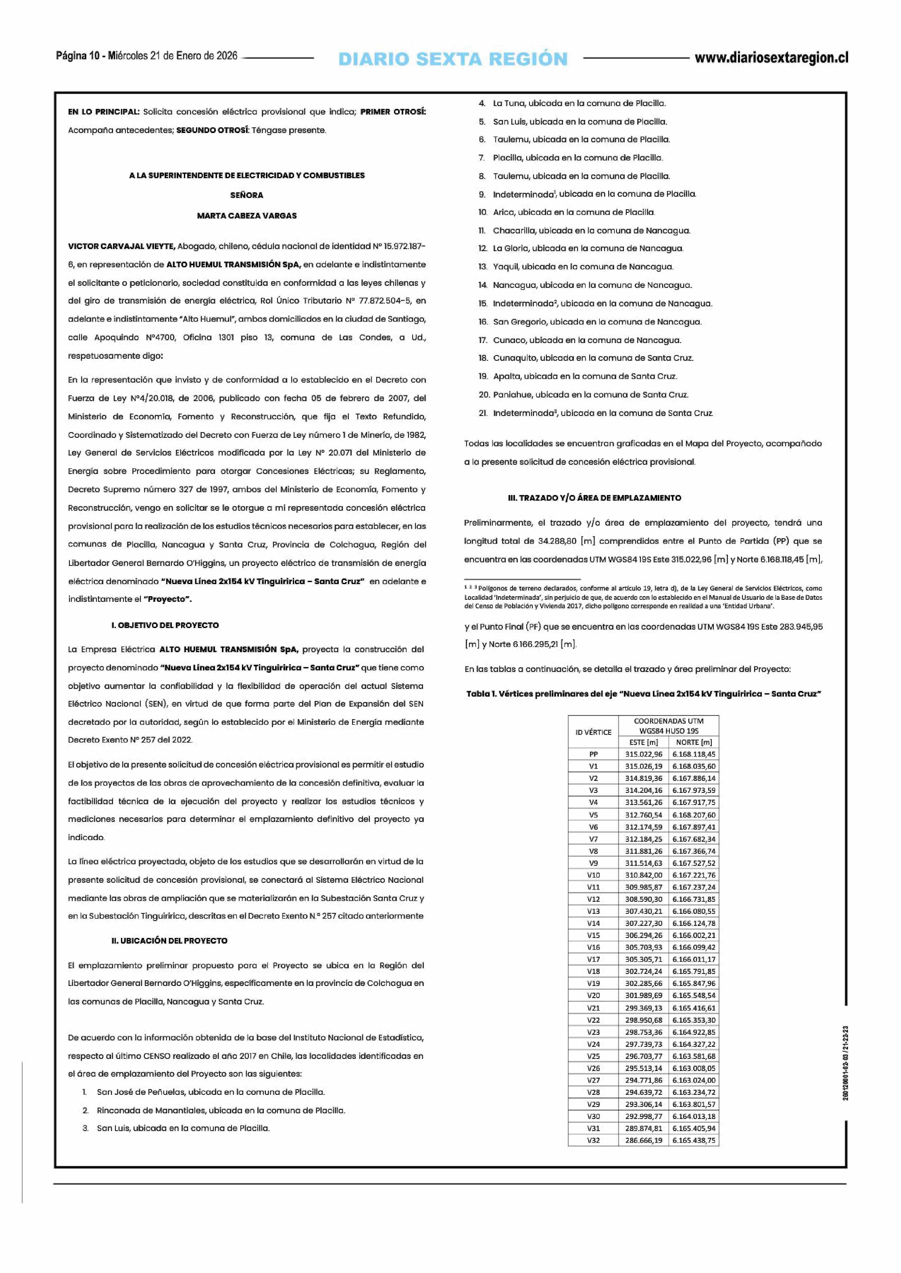 A LA SUPERINTENDENTE DE ELECTRICIDAD Y COMBUSTIBLES 21-01-2026 Diario VI Región |
