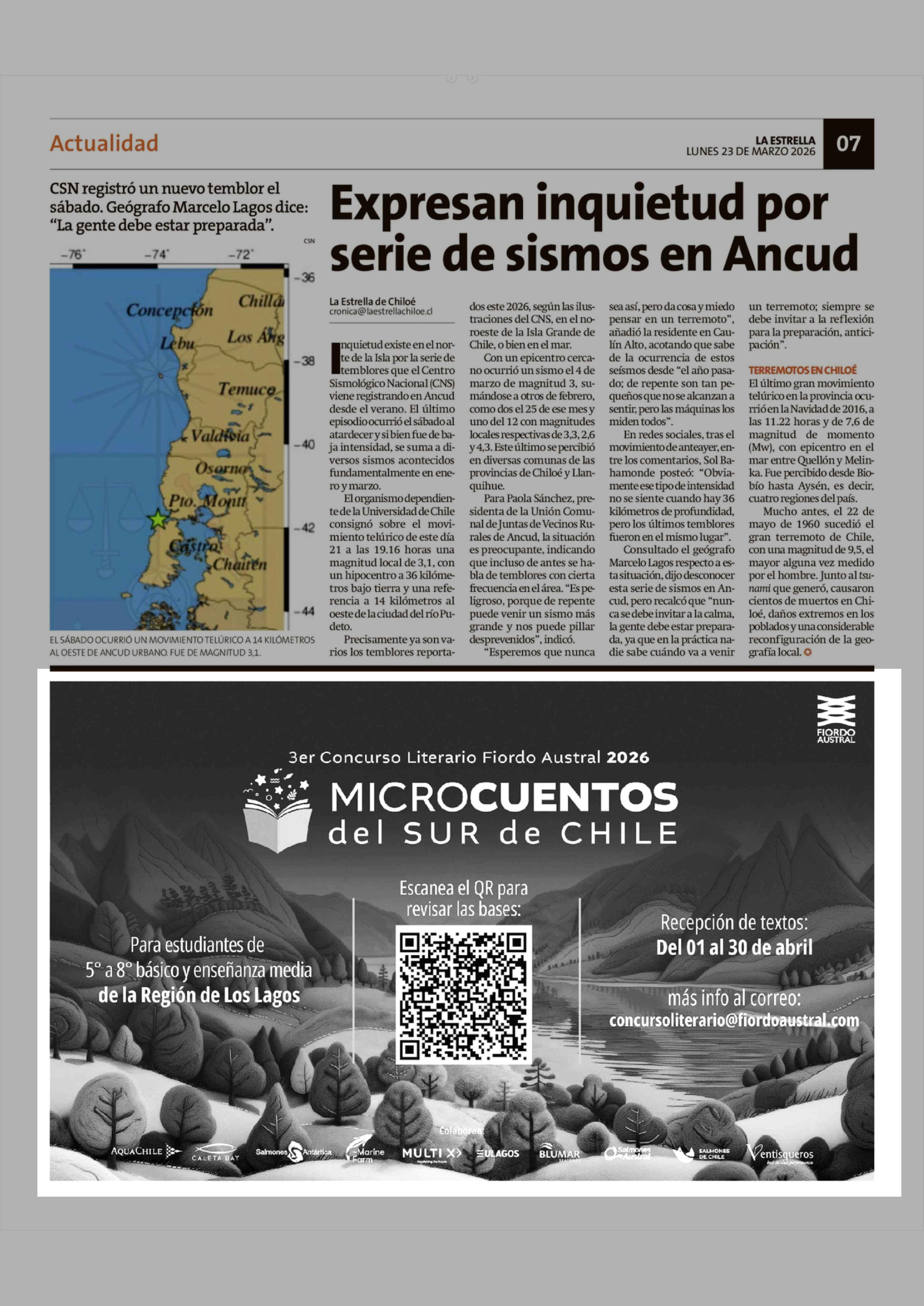 Aviso Publicitario: 3er Concurso Literario Fiordo Austral 2026 23-03-2026 La Estrella de Chiloé |