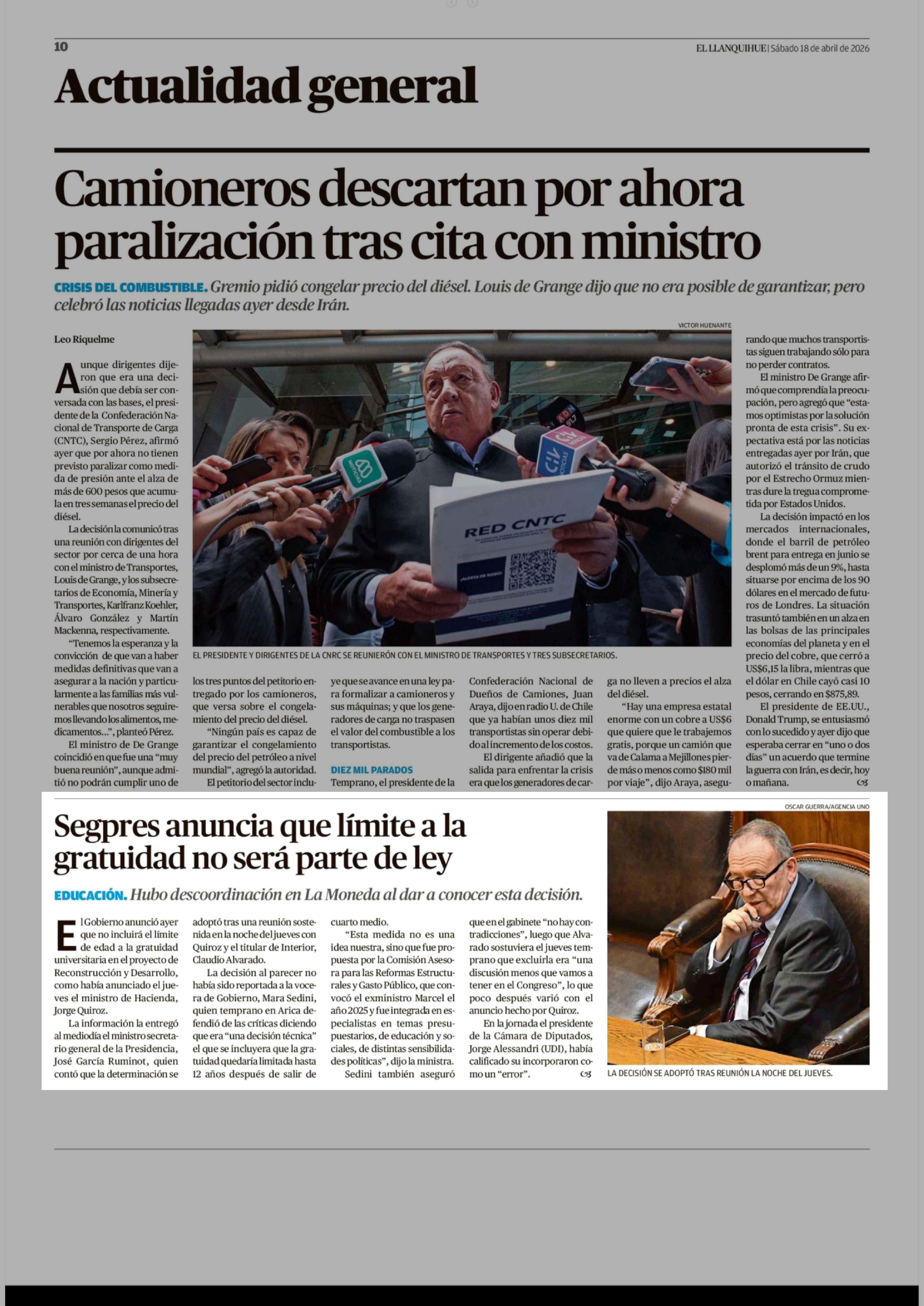 Segpres anuncia que límite a la gratuidad no será parte de ley 18-04-2026 El Llanquihue |