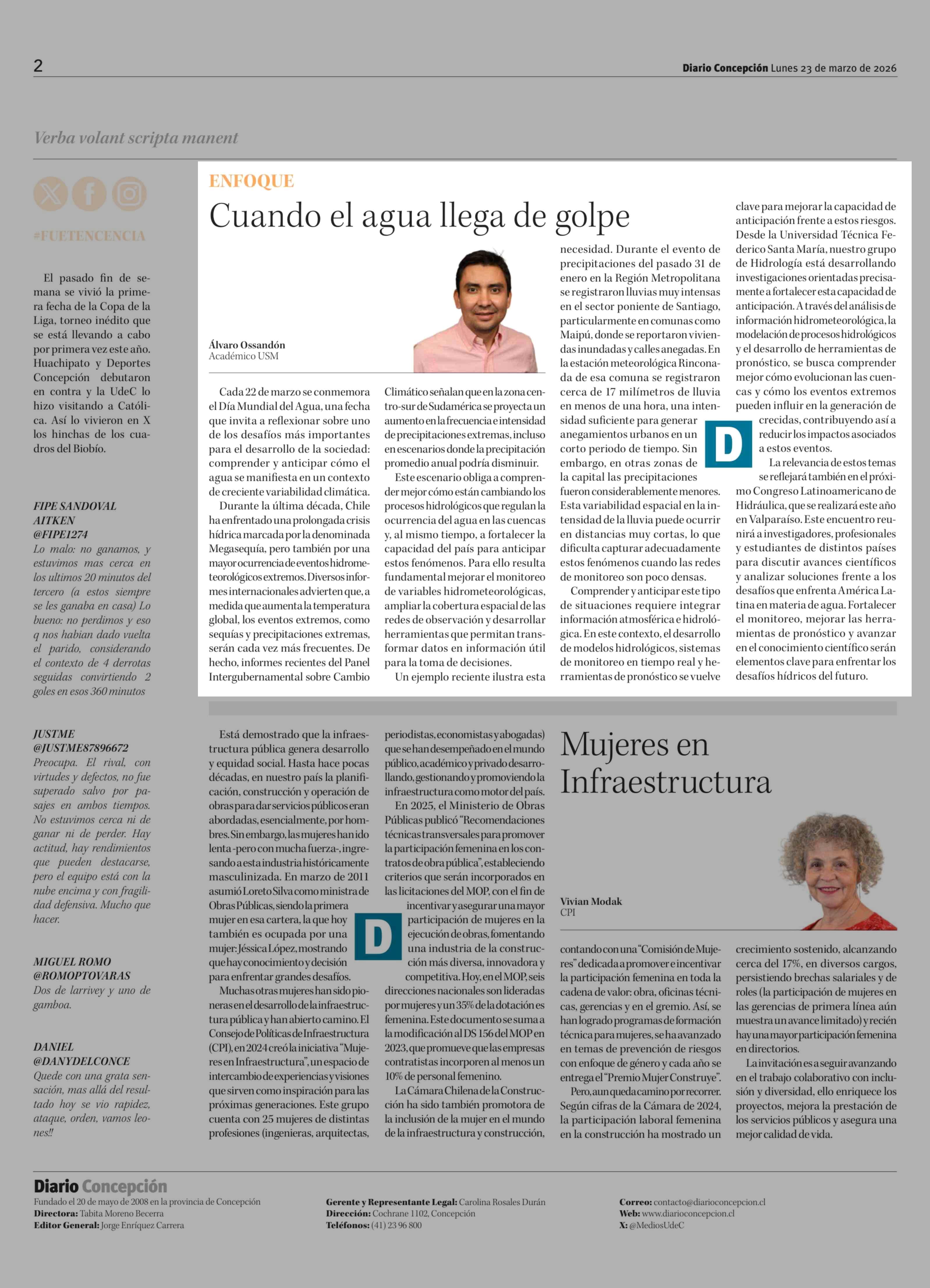 Columnas de Opinión: Cuando el agua llega de golpe 23-03-2026 Diario Concepción |