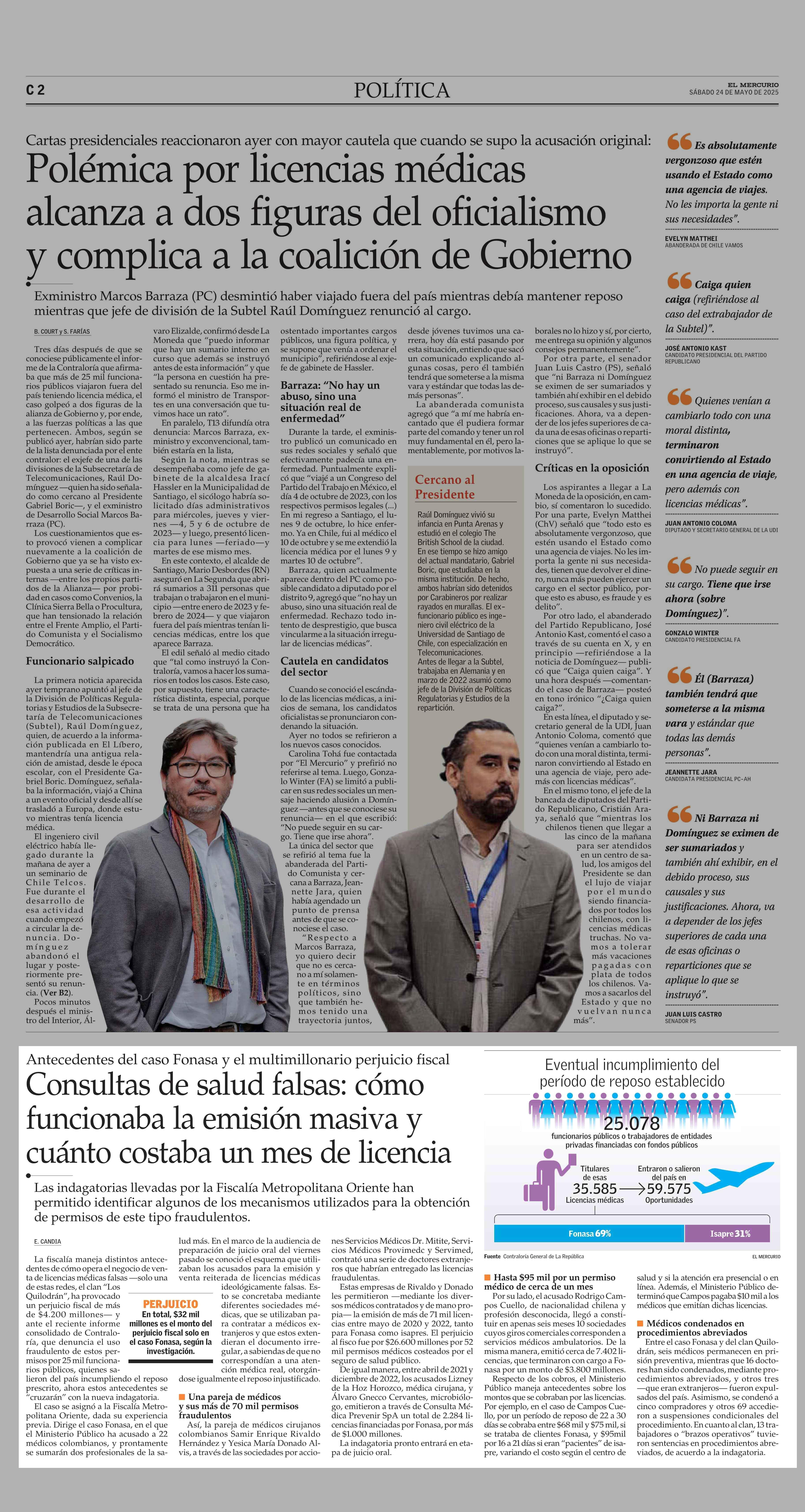 Consultas de salud falsas: cómo funcionaba la emisión masiva y cuánto costaba un mes de licencia 24-05-2025 El Mercurio |