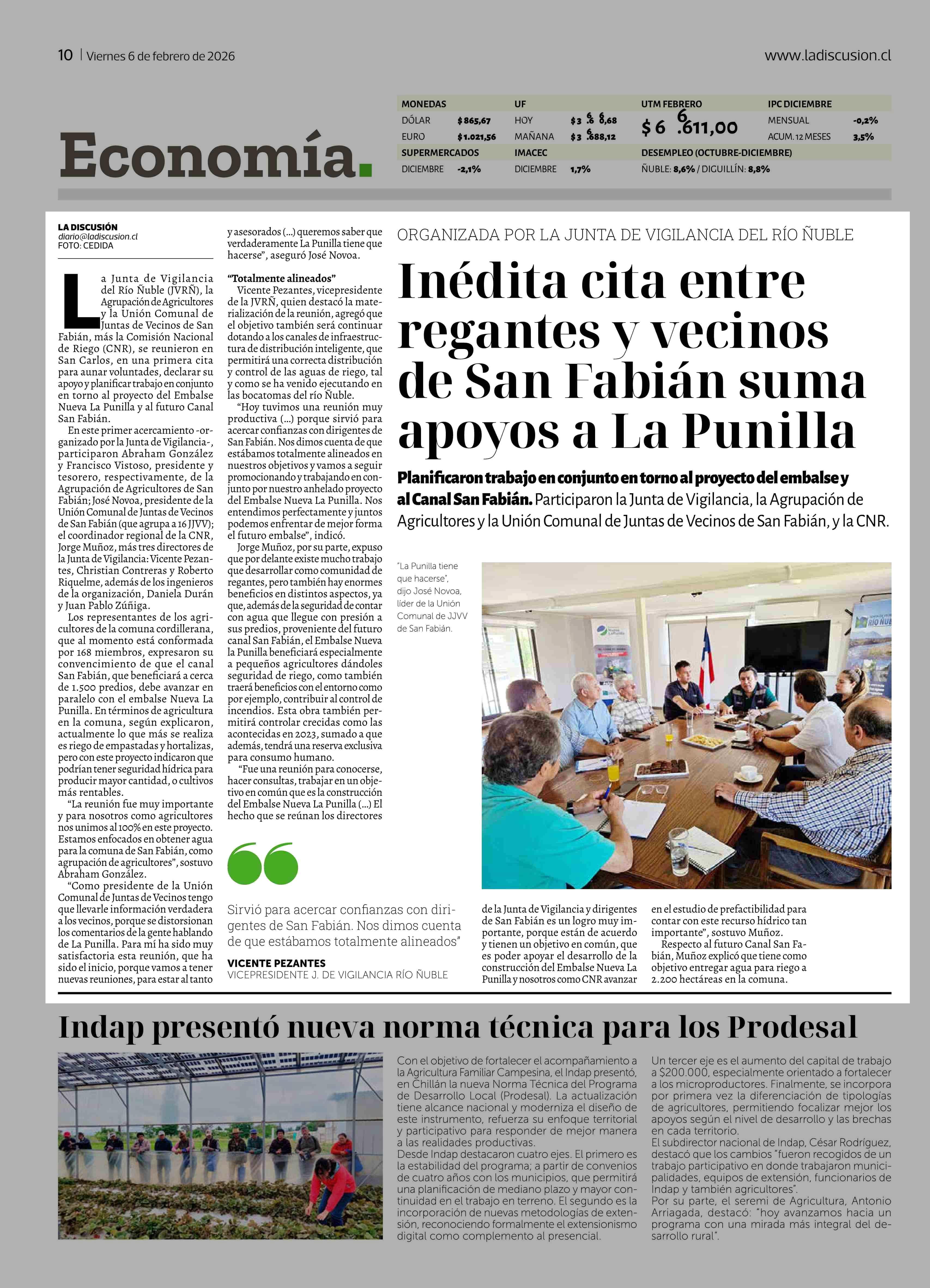 Inédita cita entre regantes y vecinos de San Fabián suma apoyos a La Punilla 06-02-2026 La Discusión |