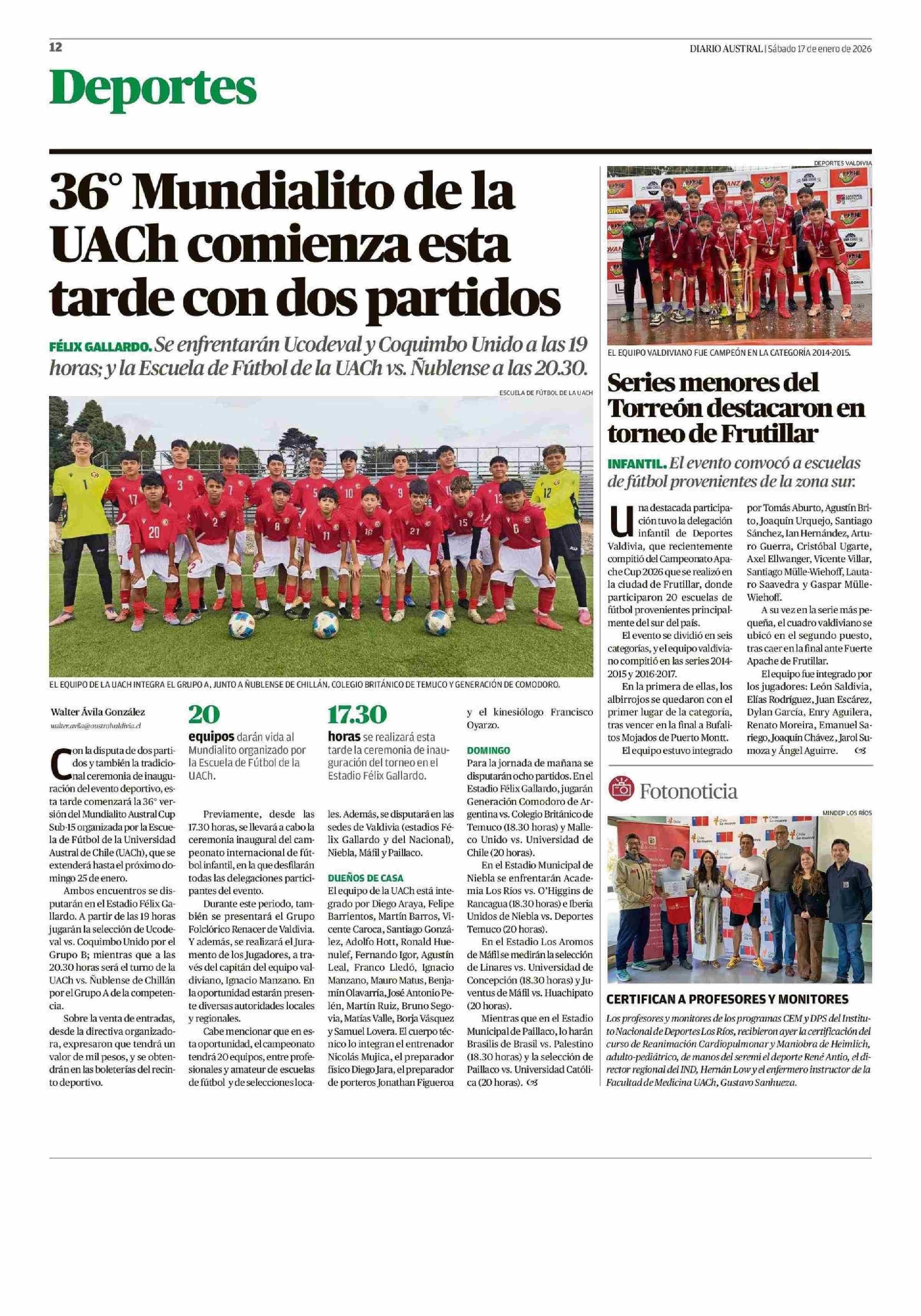 Fuente: Diario Austral Región de Los Ríos (Diario Austral Región de Los Ríos) Página(s): 12