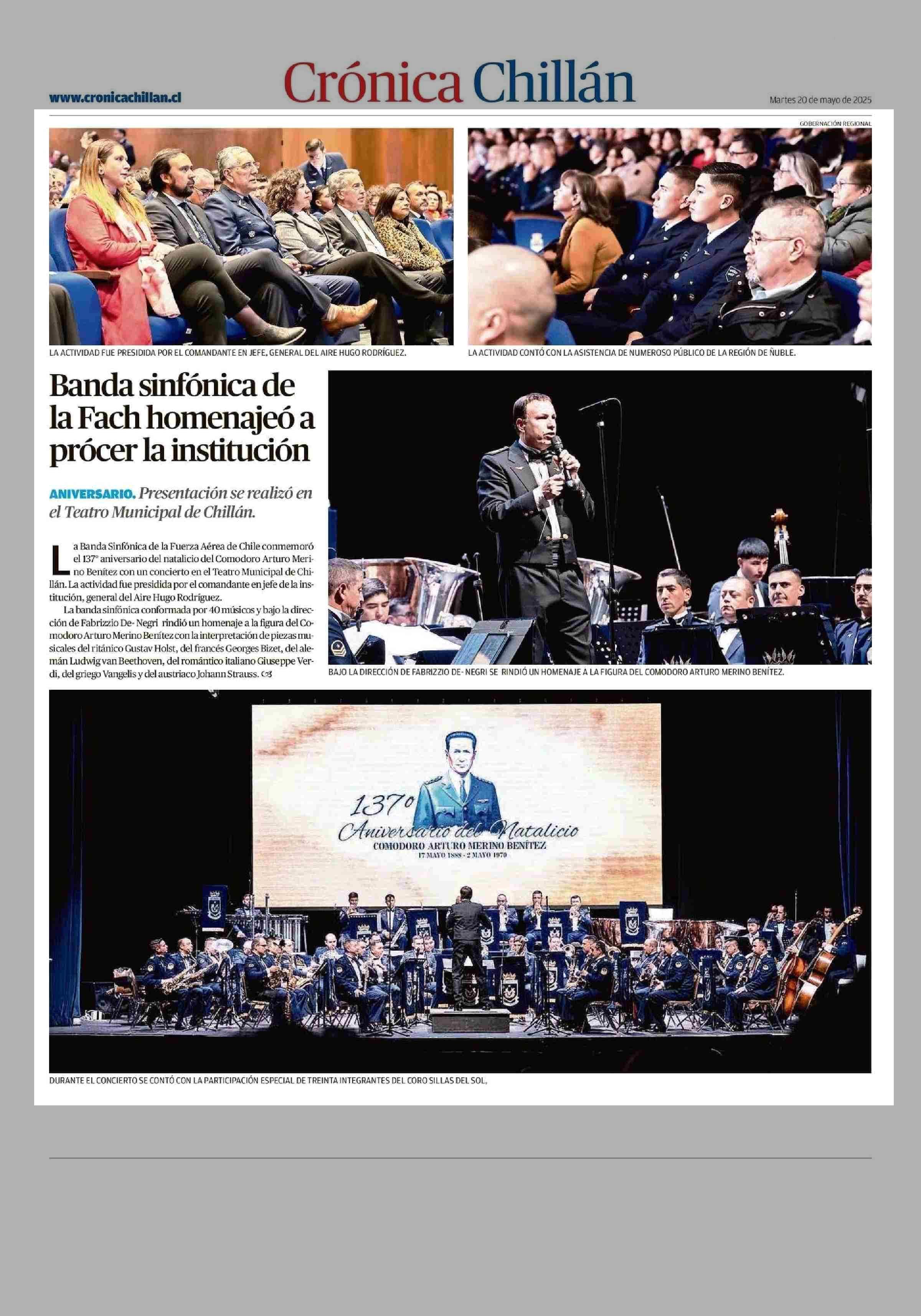 Banda sinfónica de la Fach homenajeó a prócer la institución 20-05-2025 Crónica de Chillán |