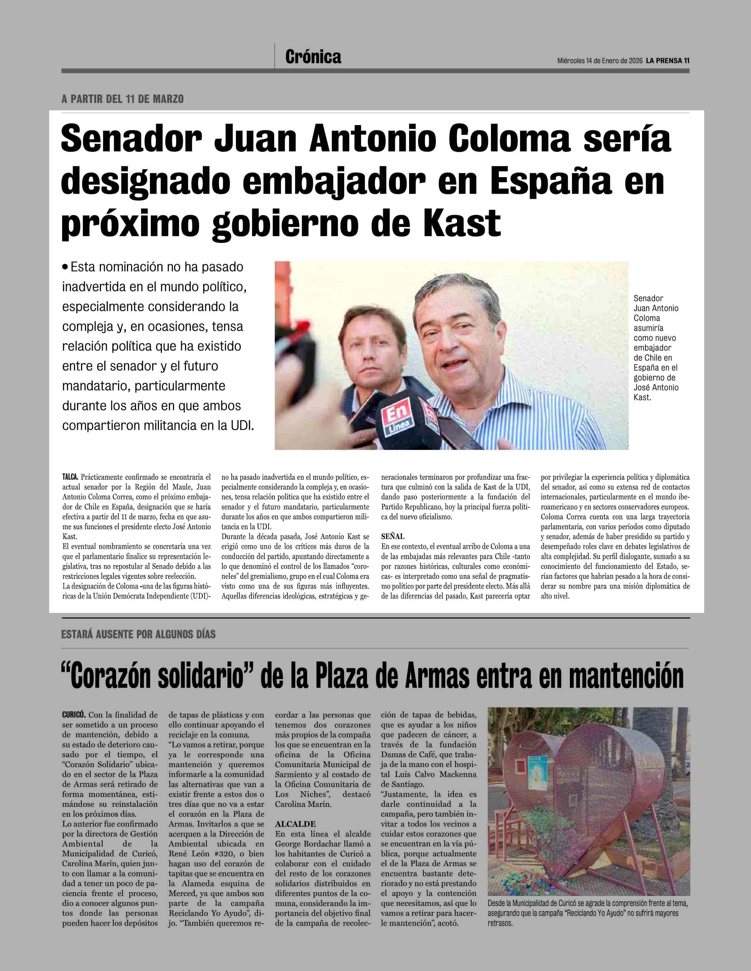 14-01-2026 La Prensa de Curicó