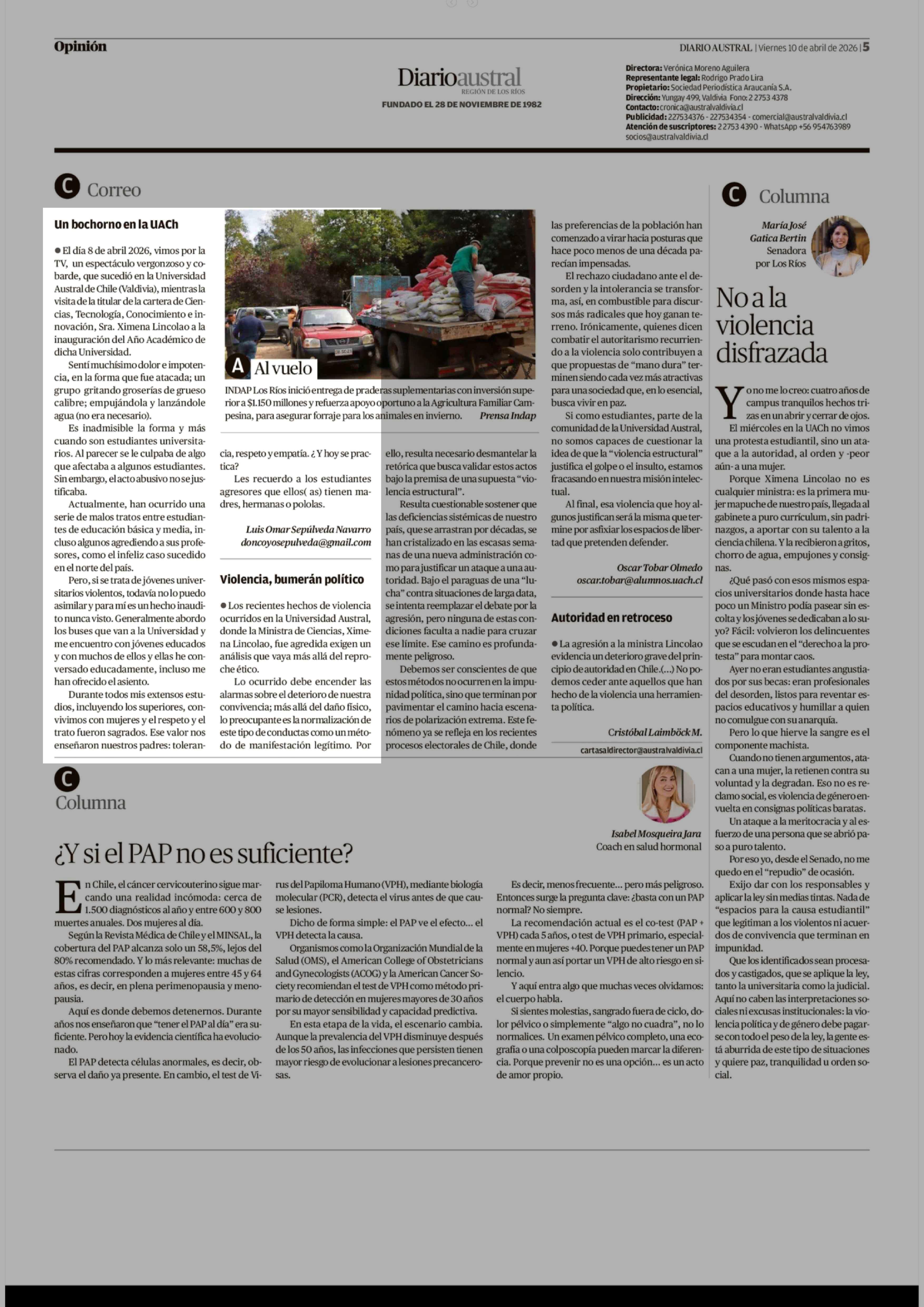 Fuente: Diario Austral Región de Los Ríos (Diario Austral Región de Los Ríos) Página(s): 5