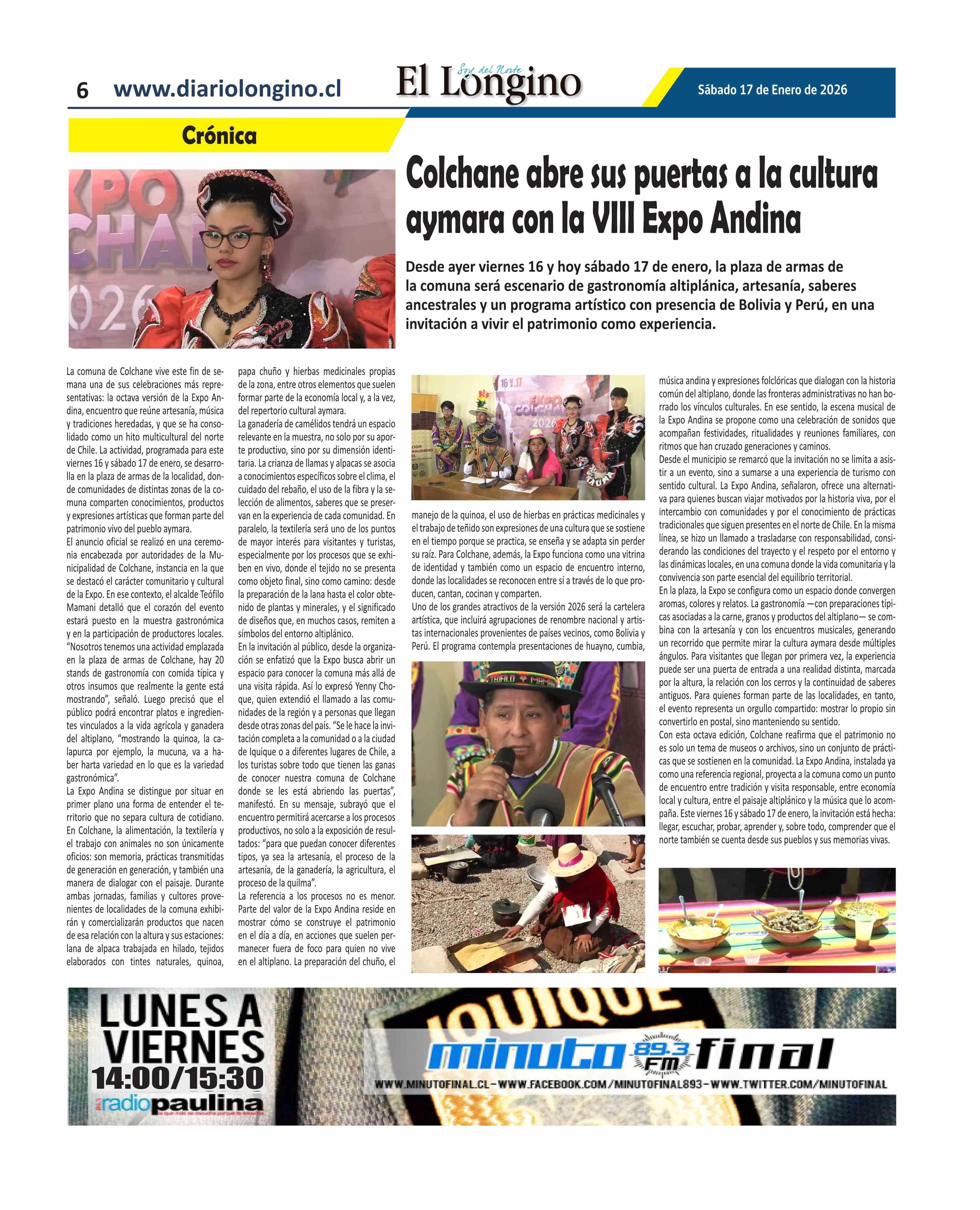 Colchane abre sus puertas a la cultura aymara con la VIII Expo Andina 17-01-2026 El Longino |