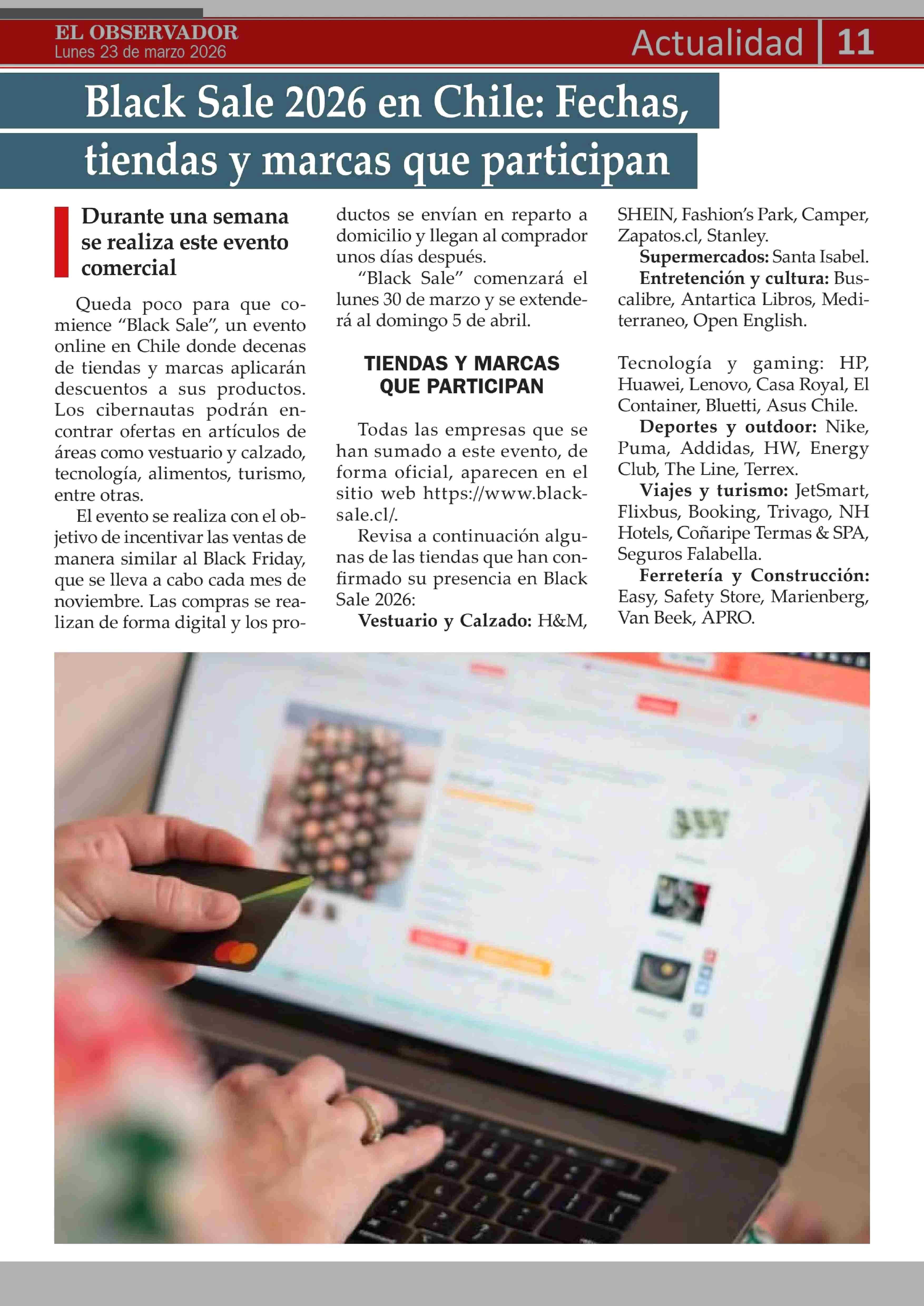 Black Sale 2026 en Chile: Fechas, tiendas y marcas que participan 23-03-2026 El Observador Vespertino |