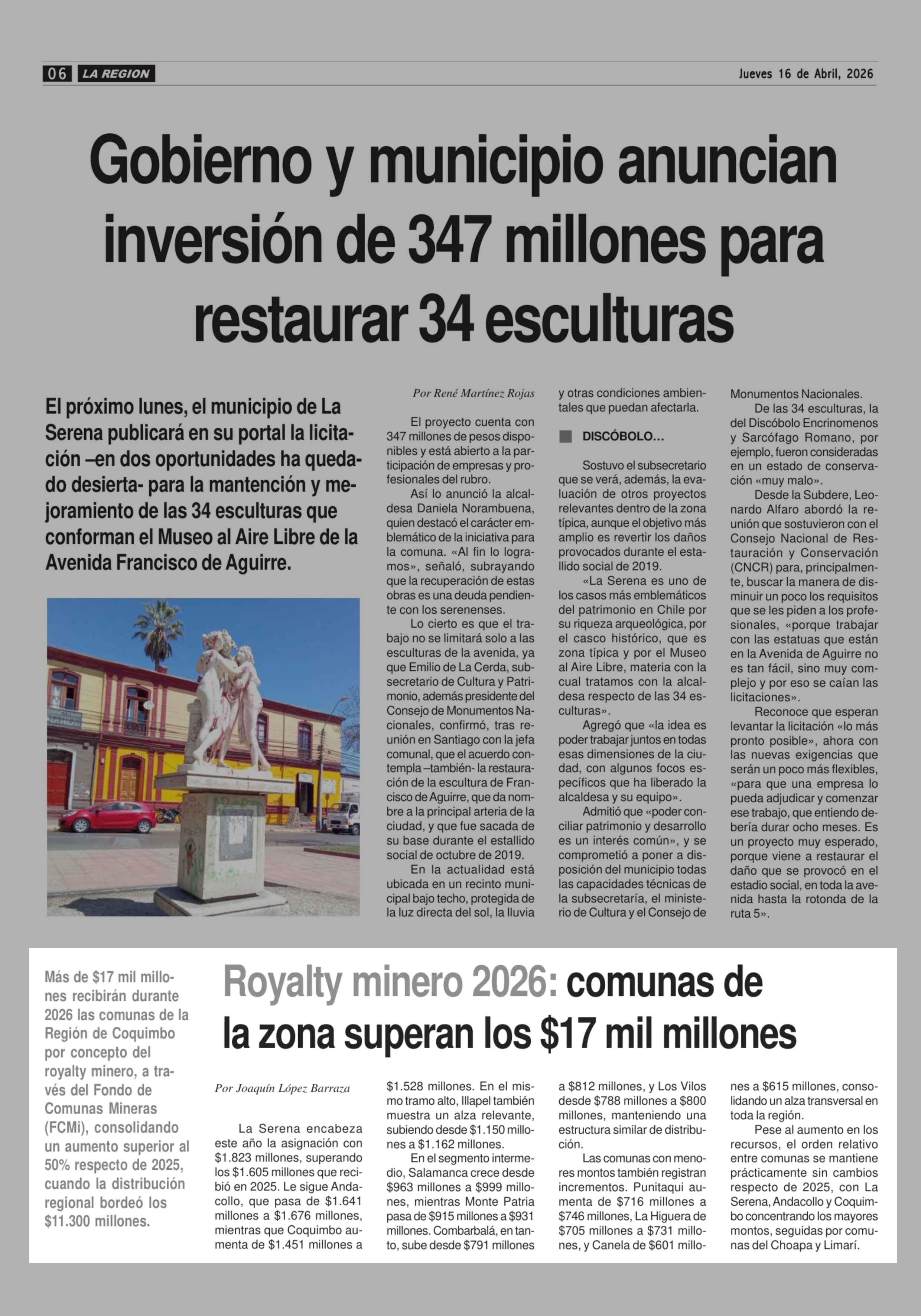 Fecha: 16-04-2026 Sector: Noticia general Región: Región de Coquimbo