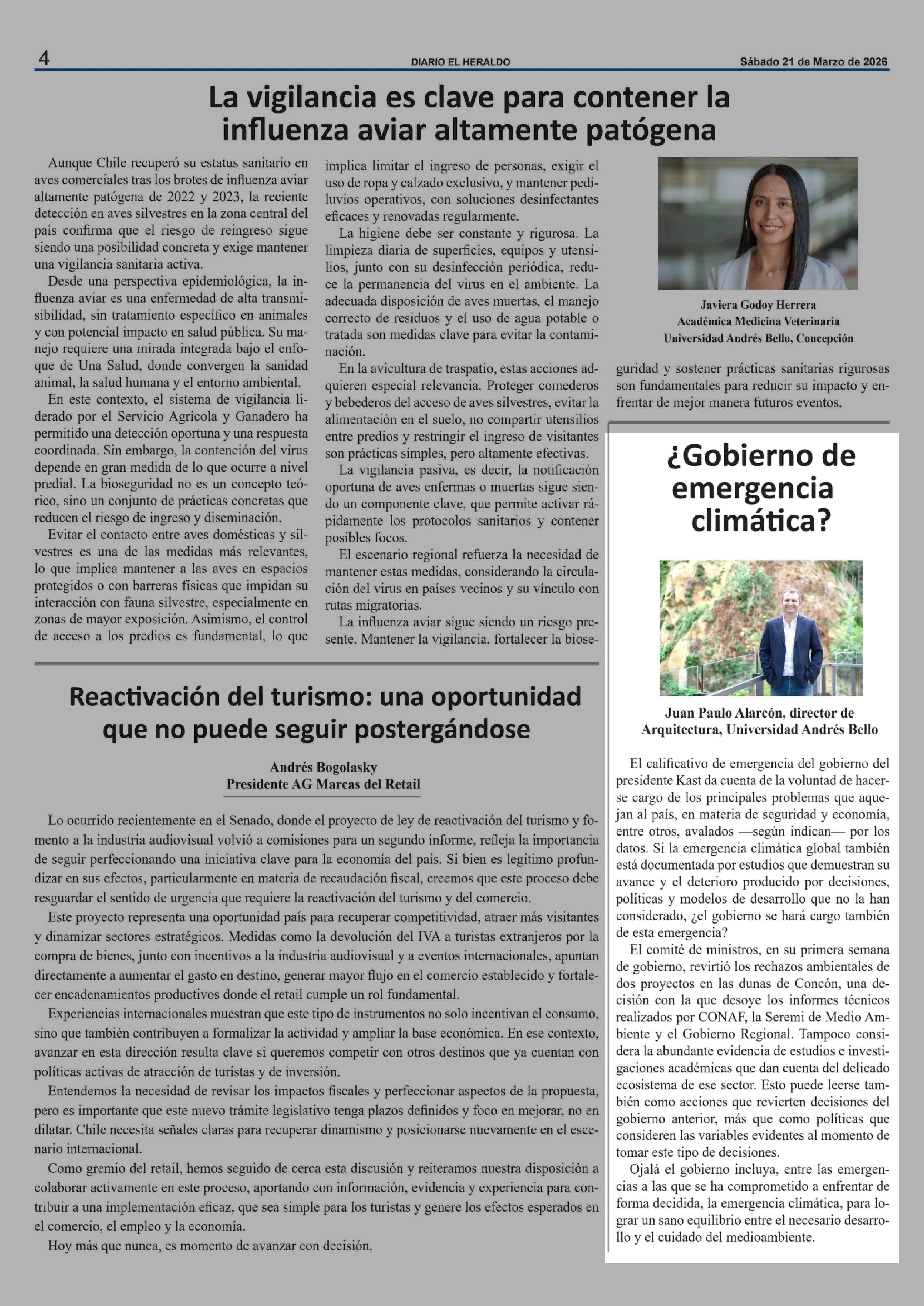 Columnas de Opinión: ¿Gobierno de emergencia climática? 21-03-2026 El Heraldo |