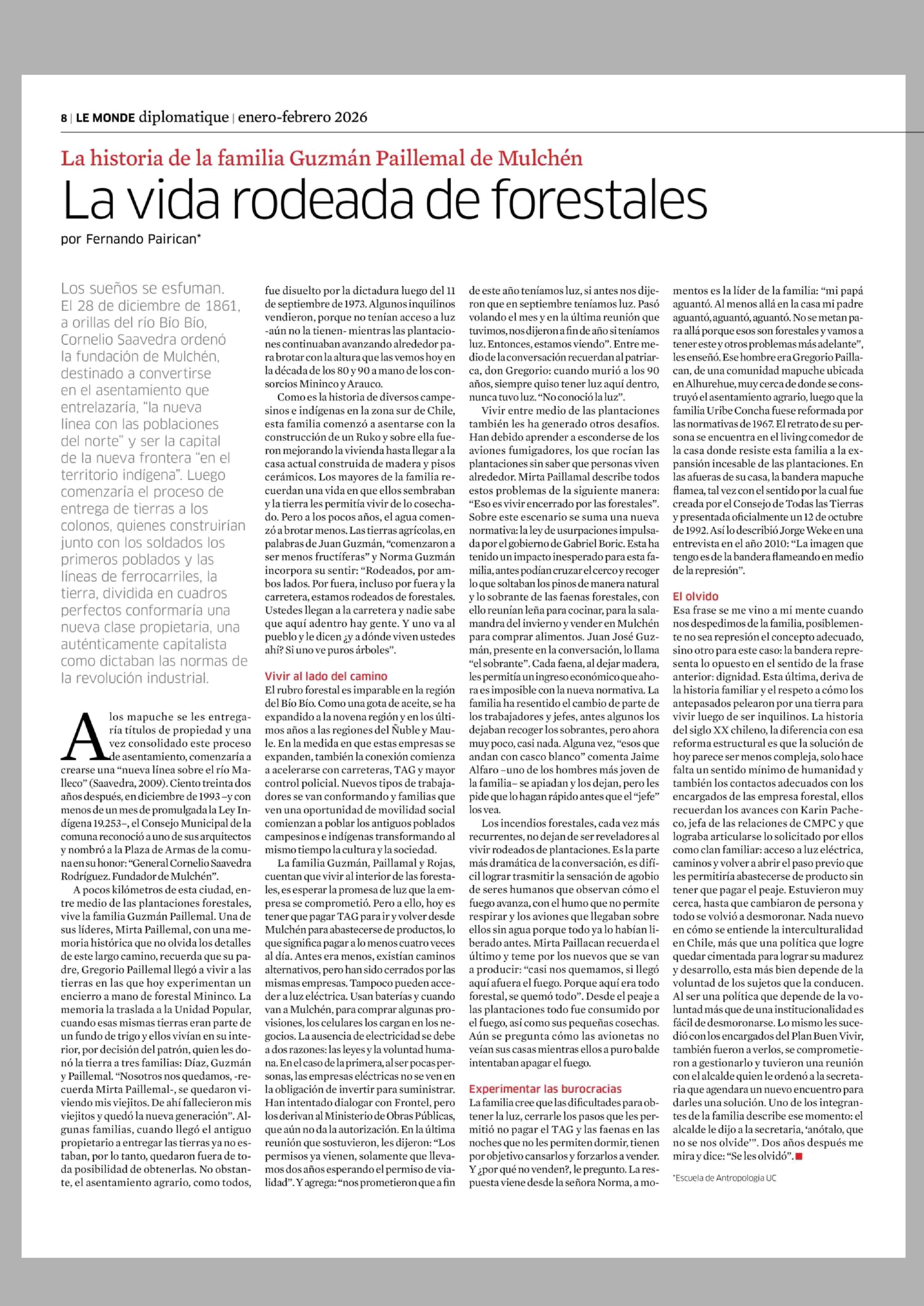 COLUMNAS DE OPINIÓN: La vida rodeada de forestales 12-01-2026 Le Monde Diplomatique |