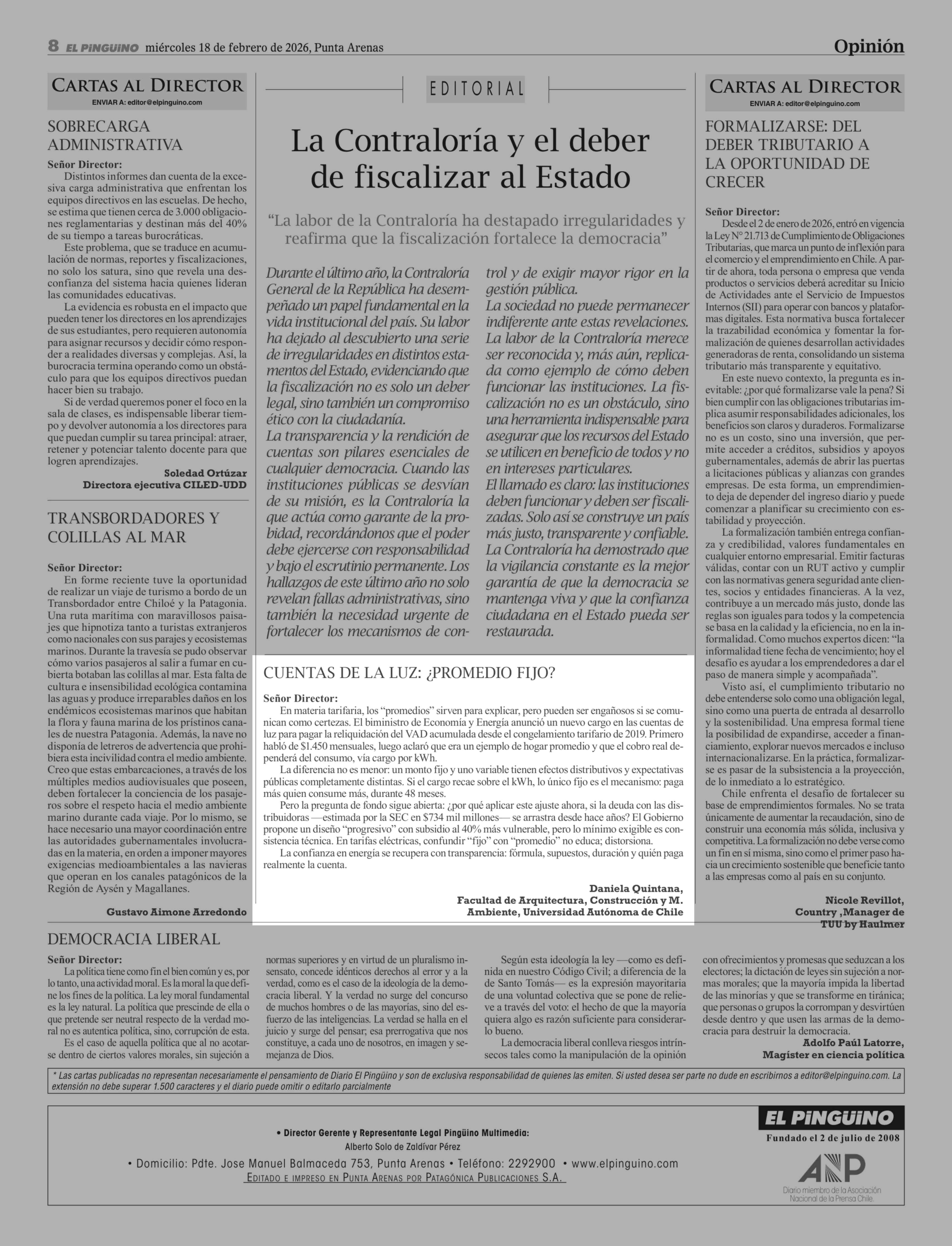 Cartas: CUENTAS DE LA LUZ: ¿ PROMEDIO FIJO? 18-02-2026 El Pingüino |