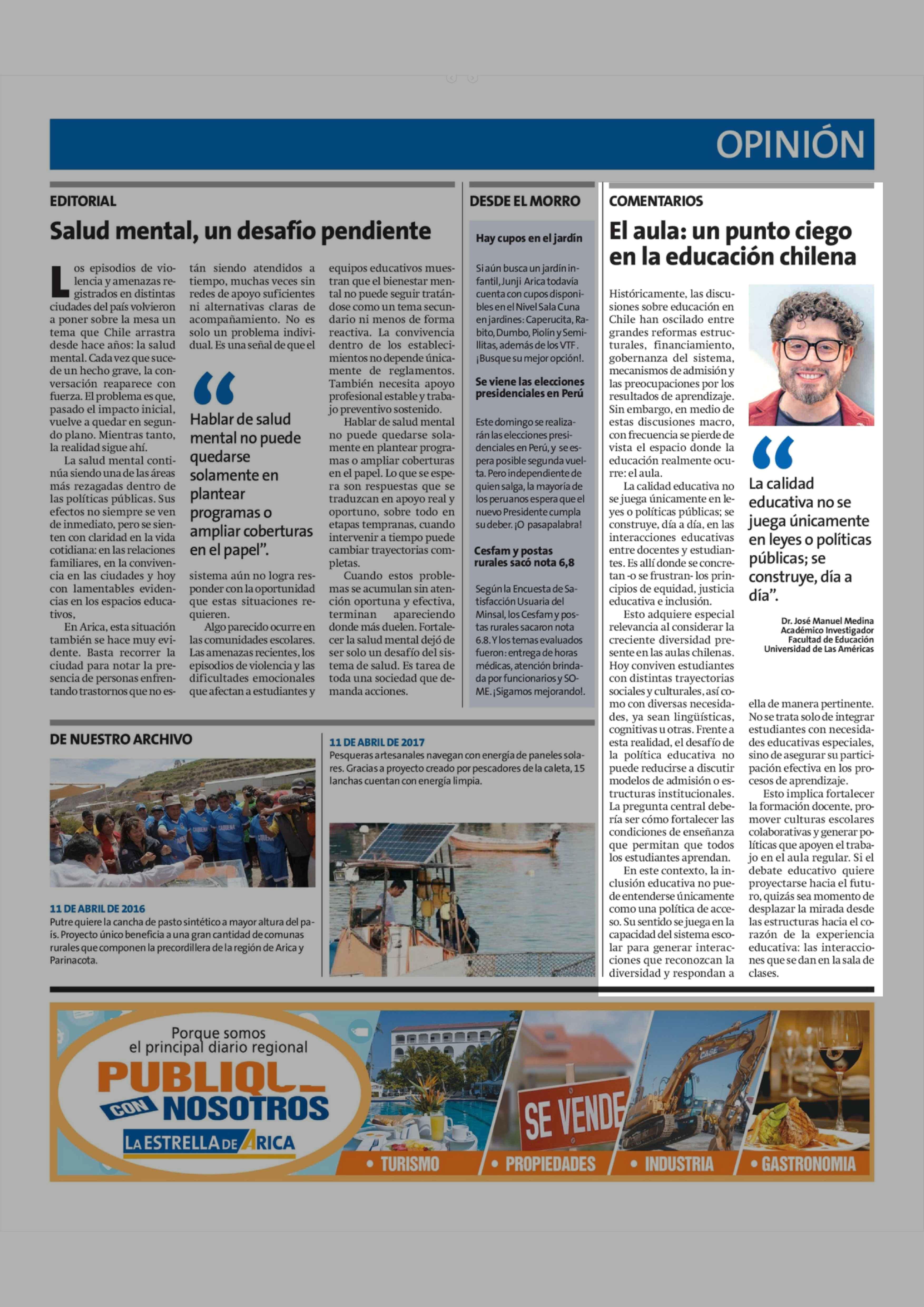 Fecha: 11-04-2026 Sector: Columnas de Opinión Región: Región de Arica y Parinacota