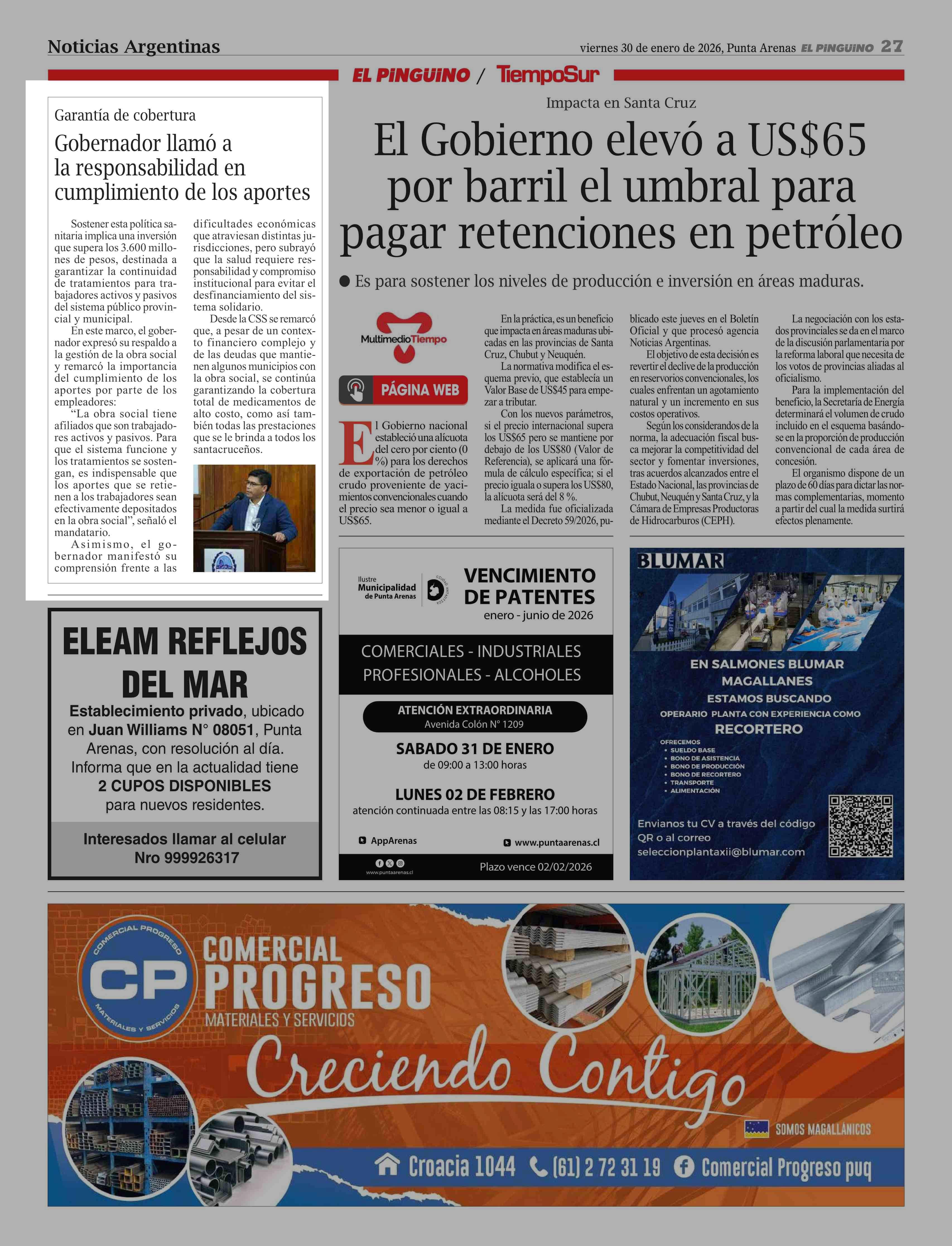 | Fecha: | 31-01-2026 | Sector: | Noticia general | Región: | Región de Magallanes y de la Antártica Chilena |