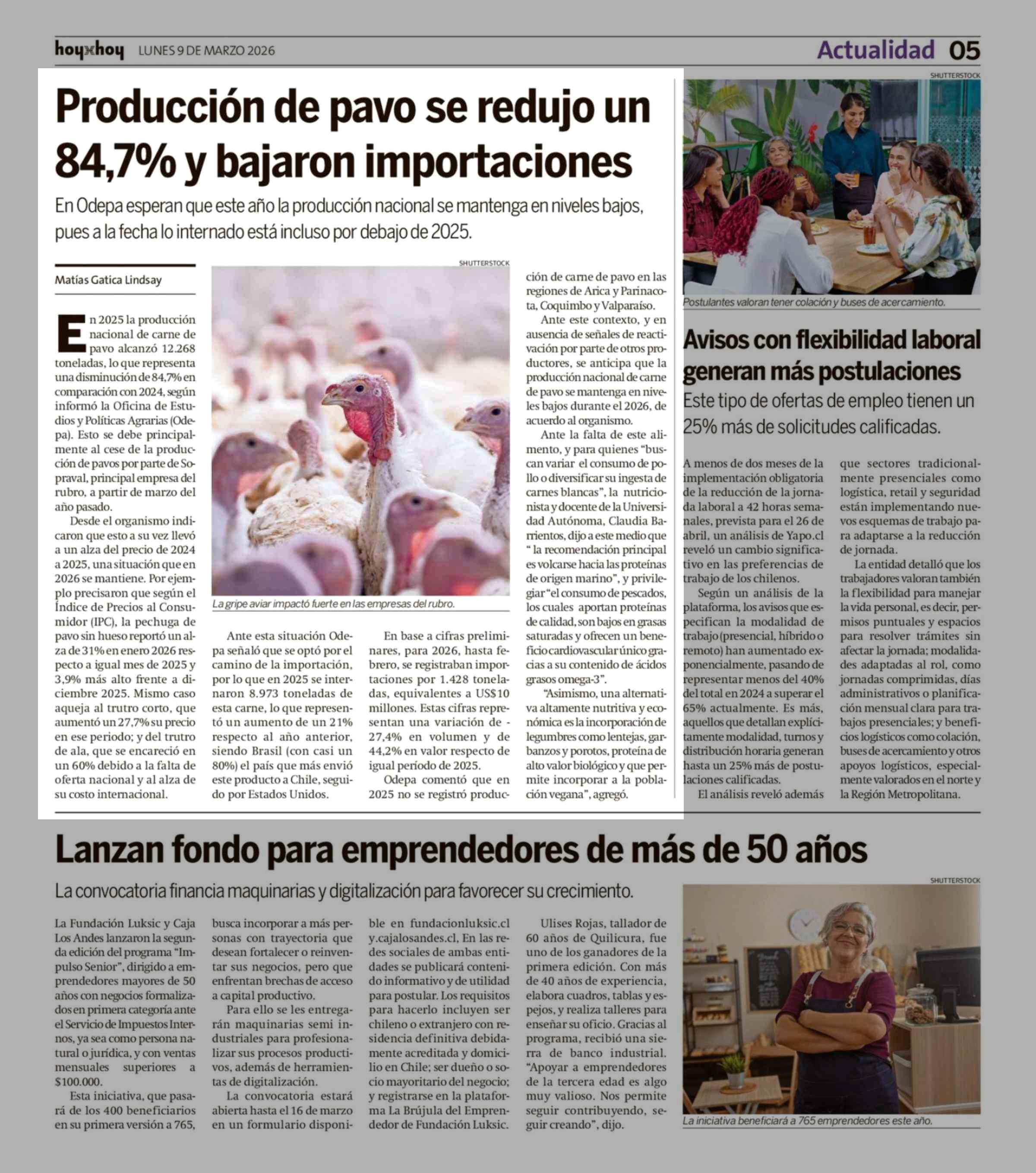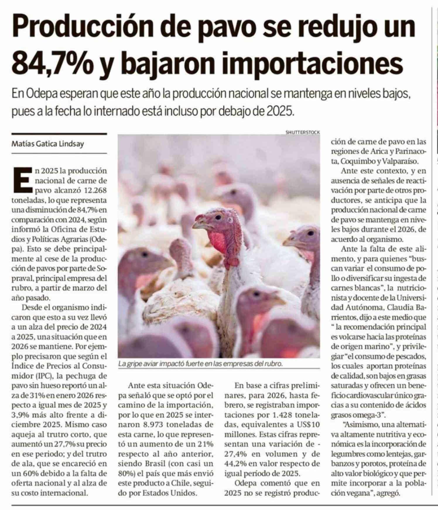 Producción de pavo se redujo un 84,7% y bajaron importaciones 09-03-2026 Hoy x Hoy Antofagasta |