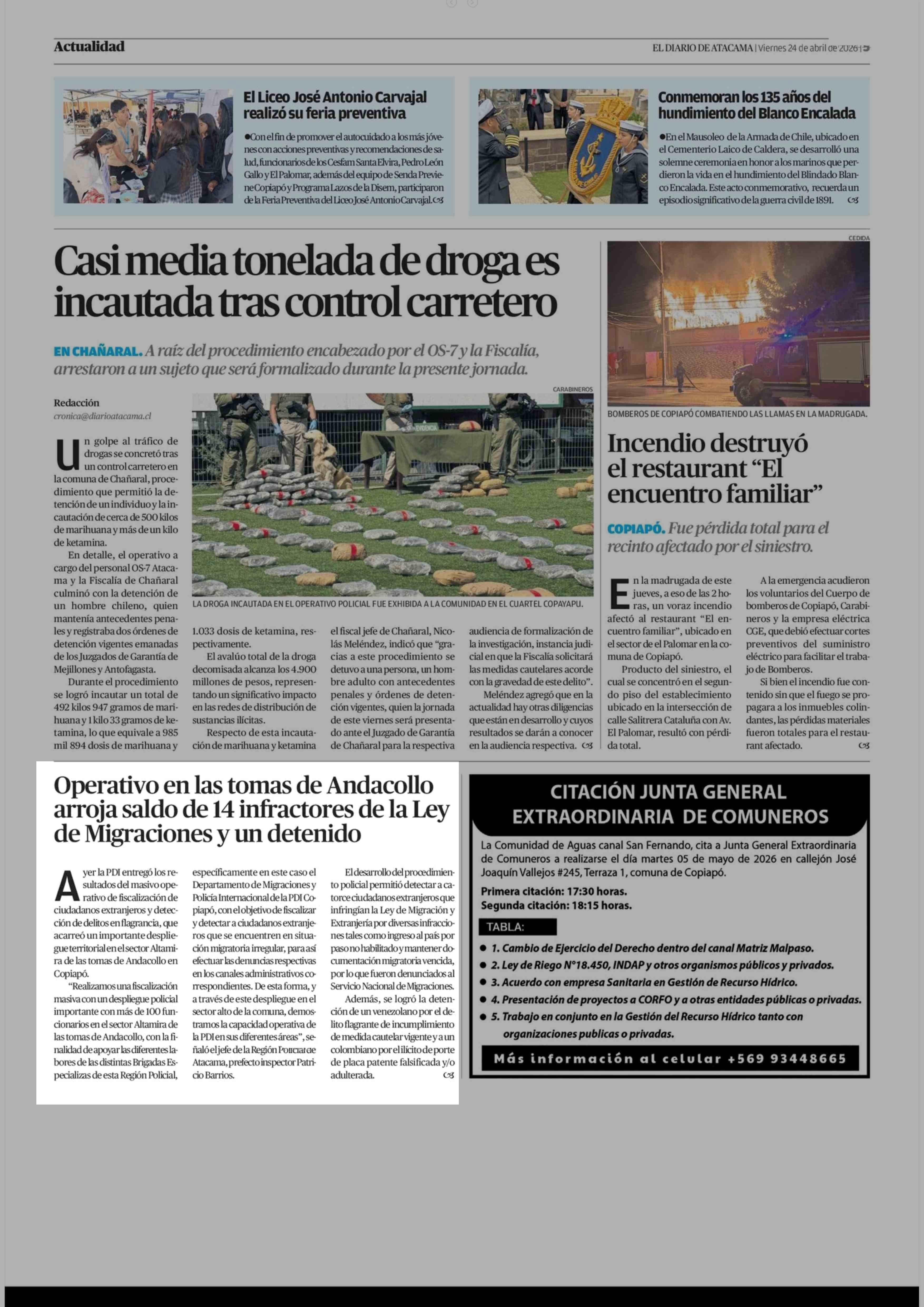 | Fecha: | 24-04-2026 | Sector: | Noticia general | Región: | Región de Atacama |