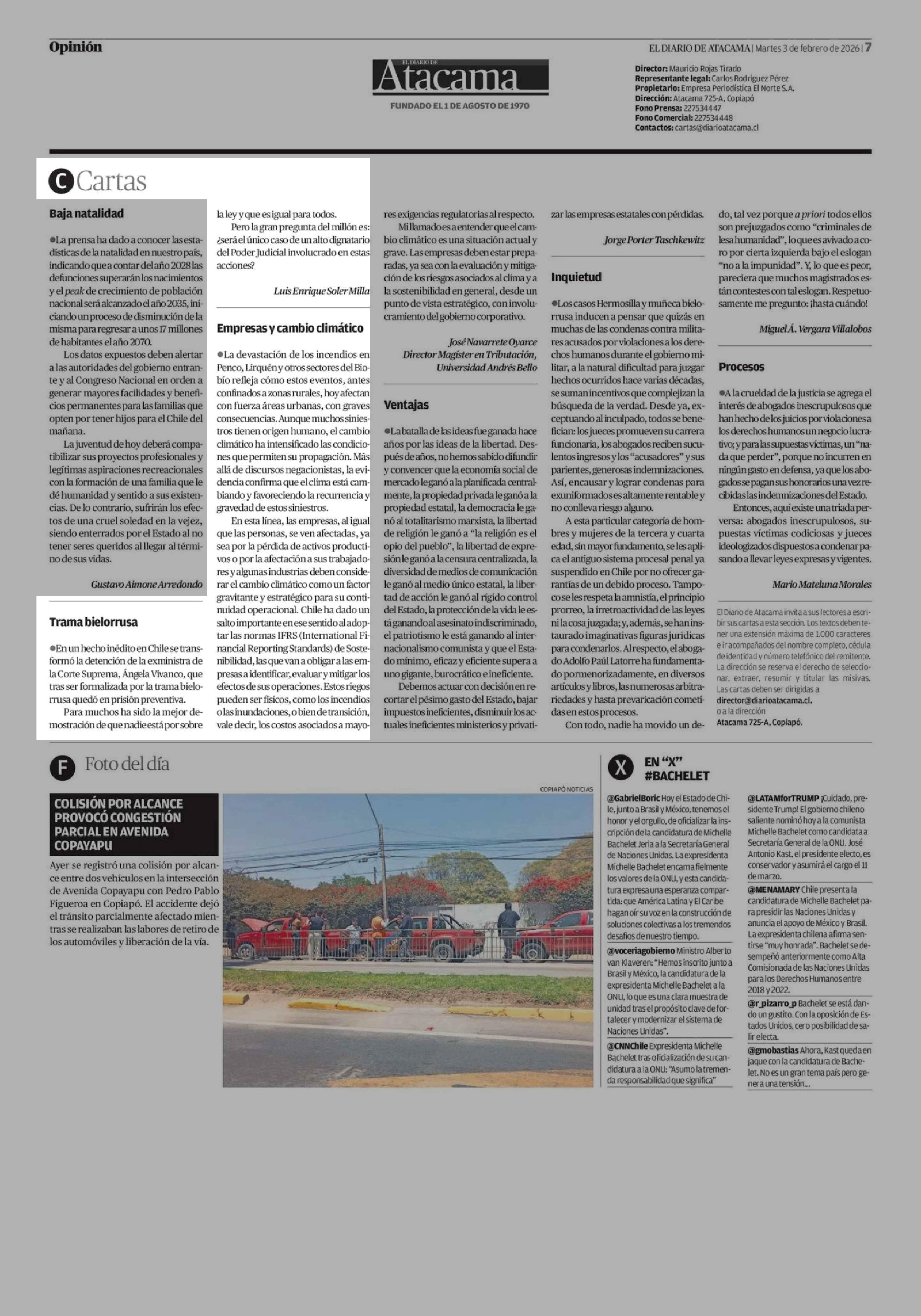 CARTAS: Trama bielorrusa 03-02-2026 El Diario de Atacama |