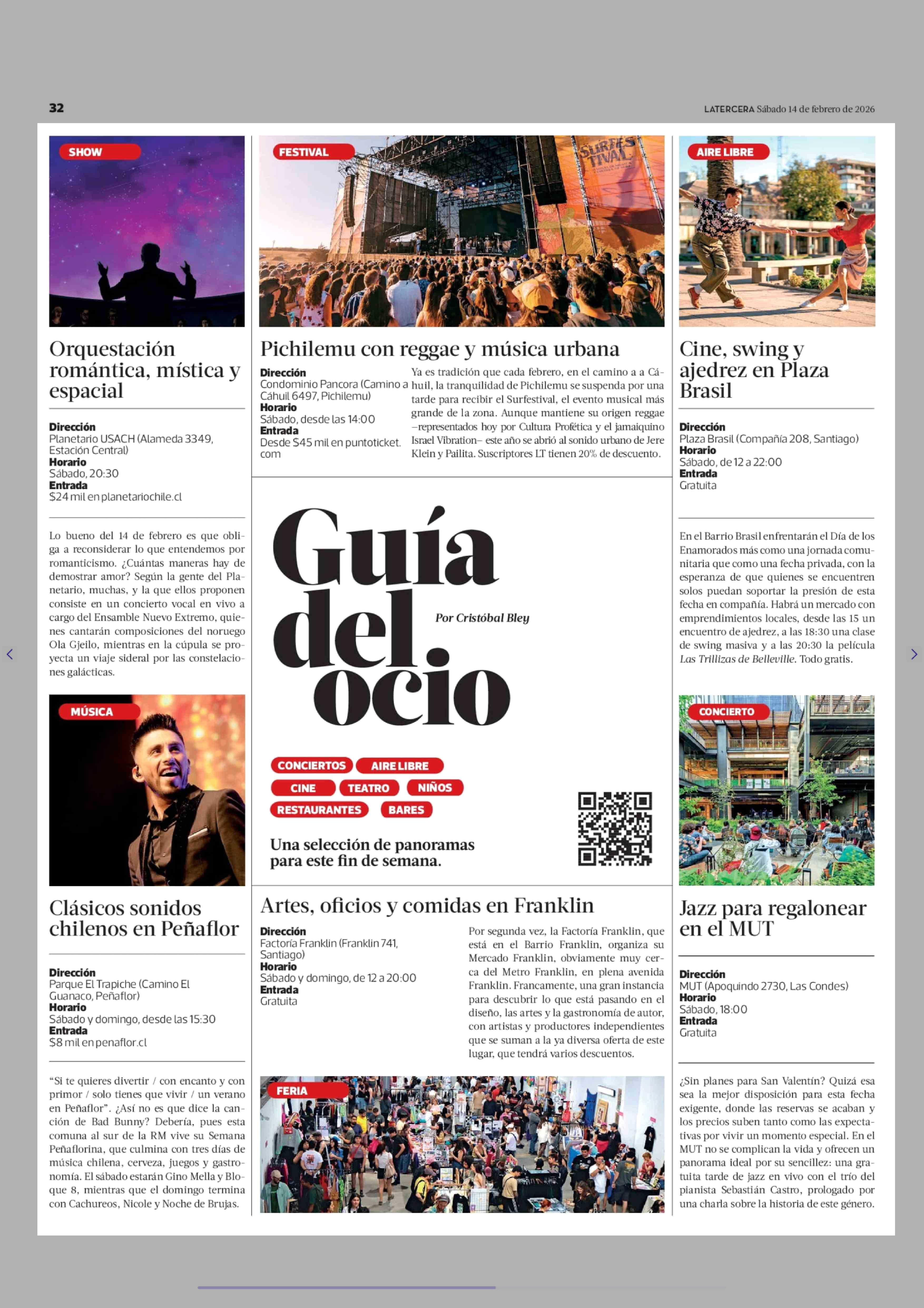 GUÍA DEL OCIO 14-02-2026 La Tercera |