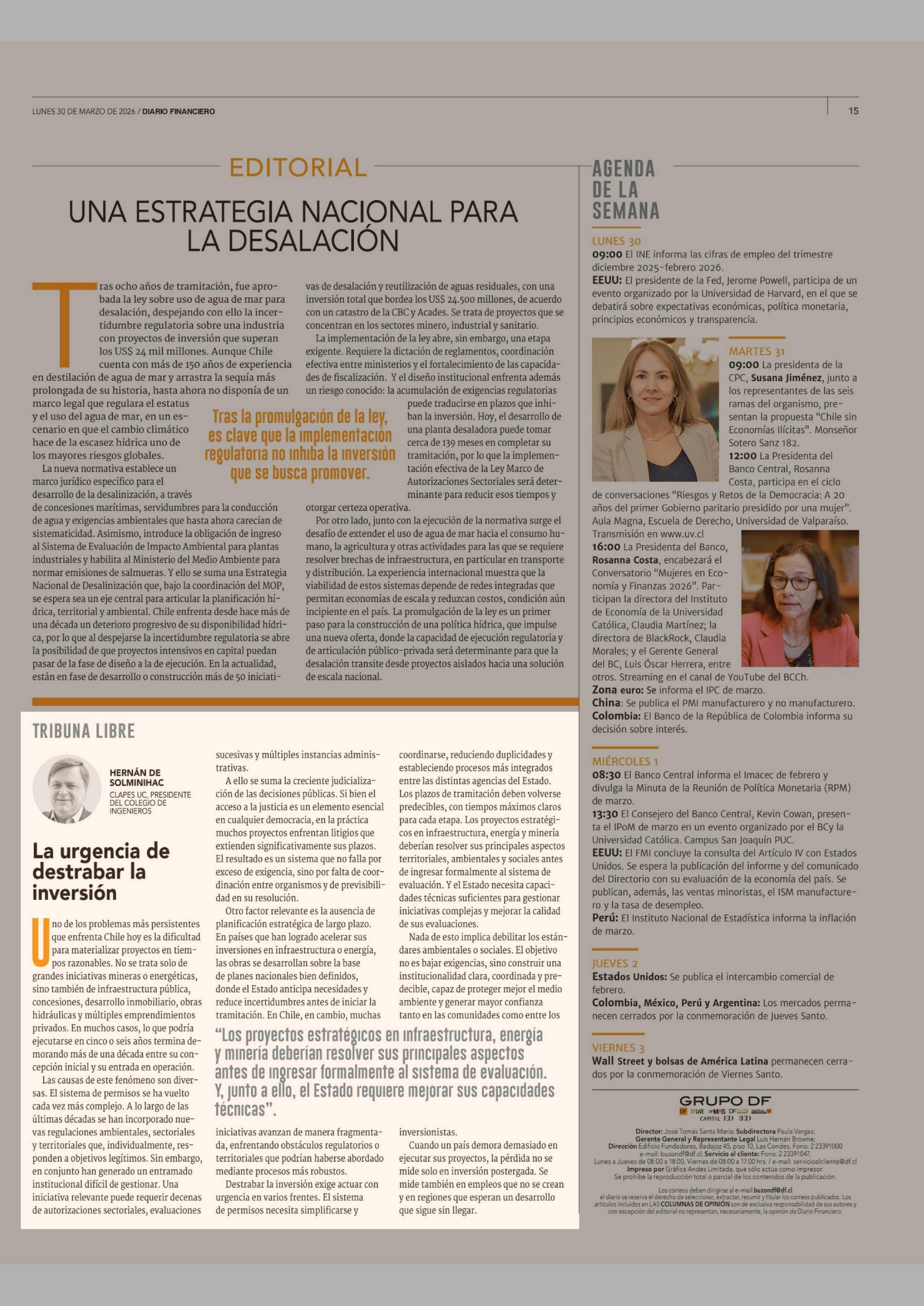 Fuente: Diario Financiero (Diario Financiero) Página(s): 15
