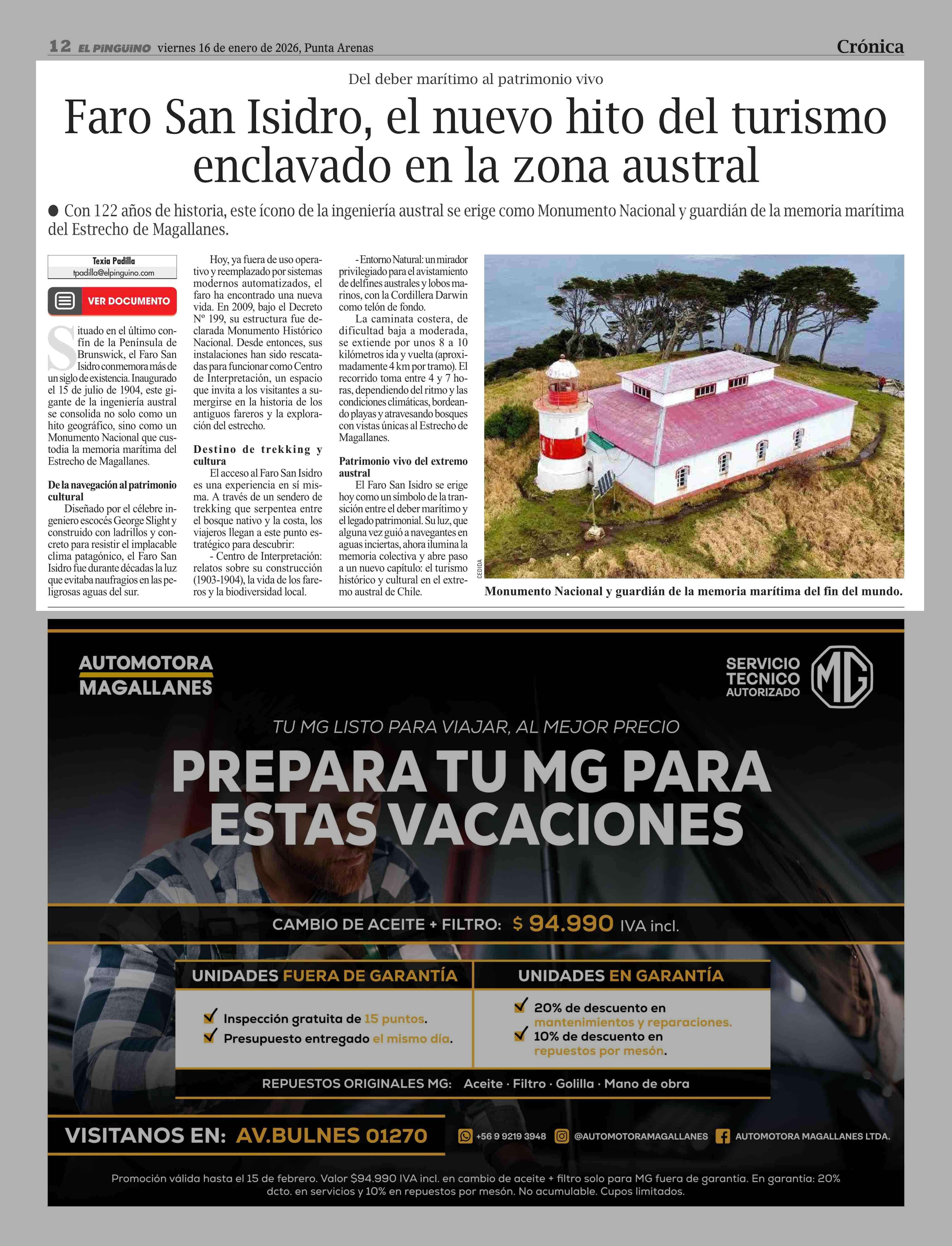 Título: Faro San Isidro, el nuevo hito del turismo enclavado en la zona austral