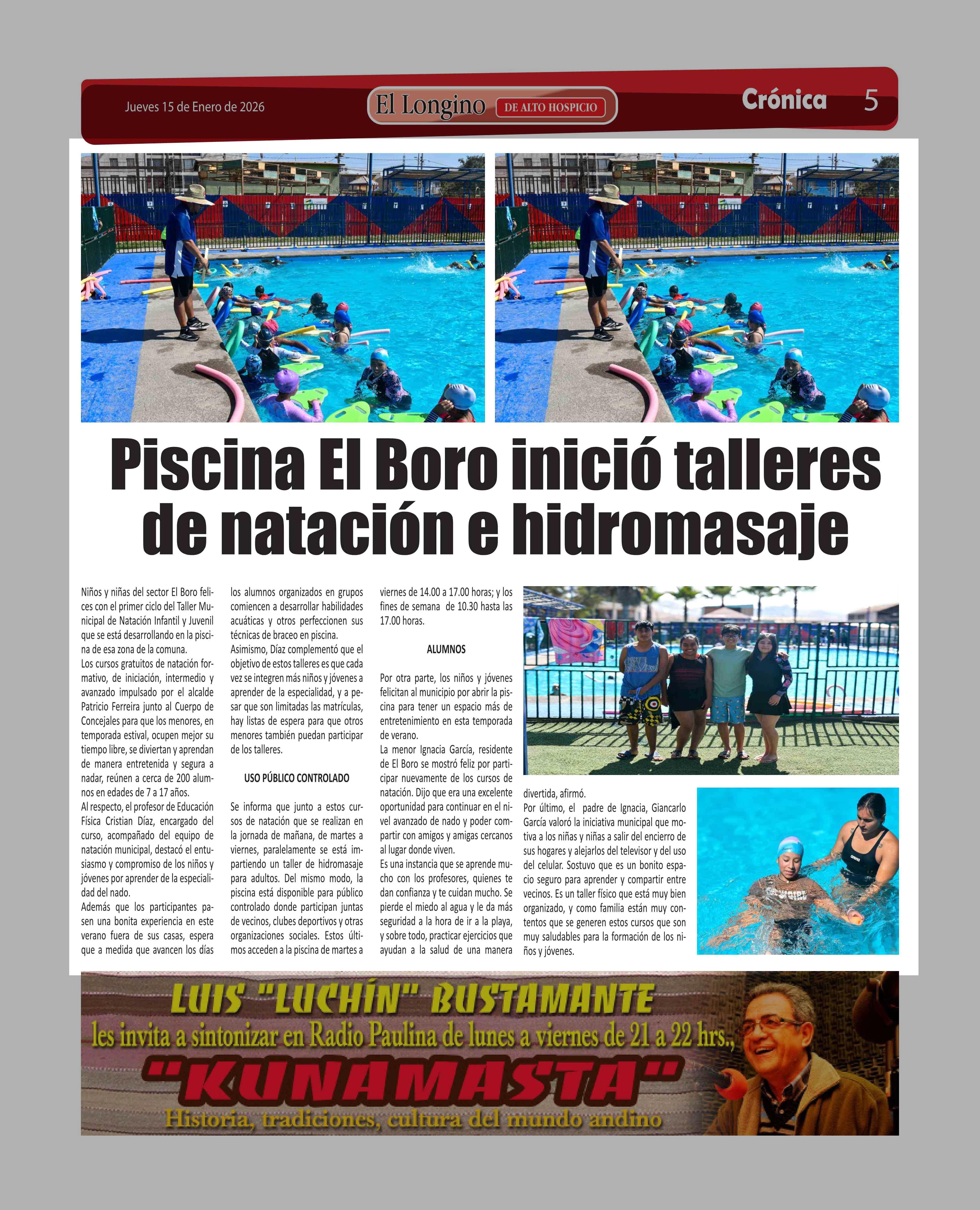 Piscina El Boro inició talleres de natación e hidromasaje 15-01-2026 El Longino |