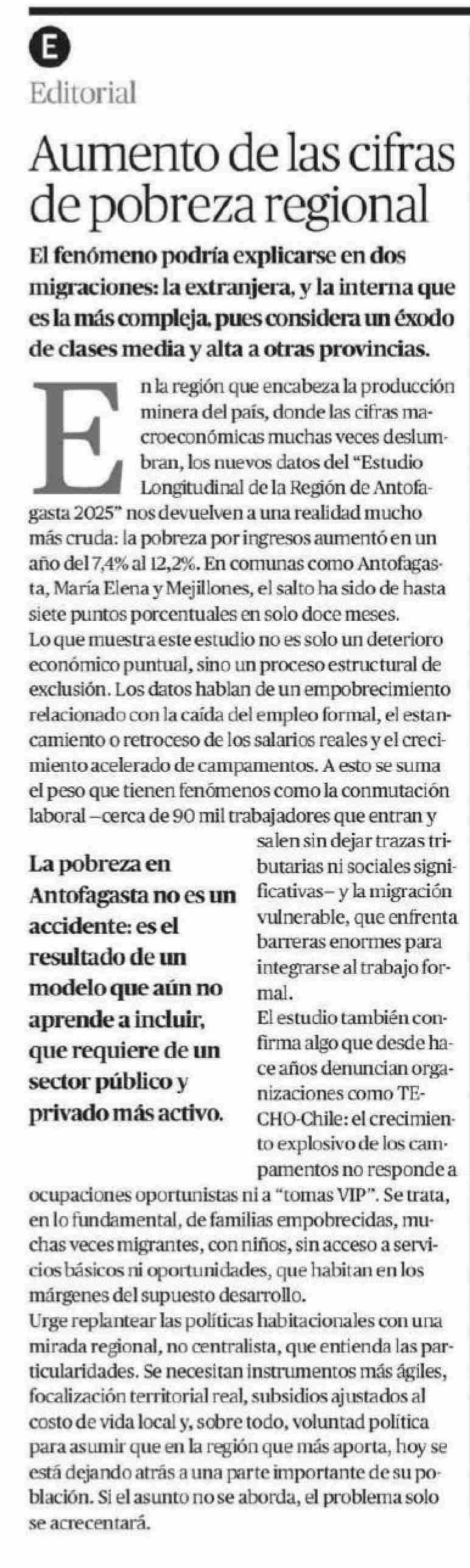 Editorial: Aumento de las cifras de pobreza regional 08-06-2025 El Mercurio de Antofagasta |