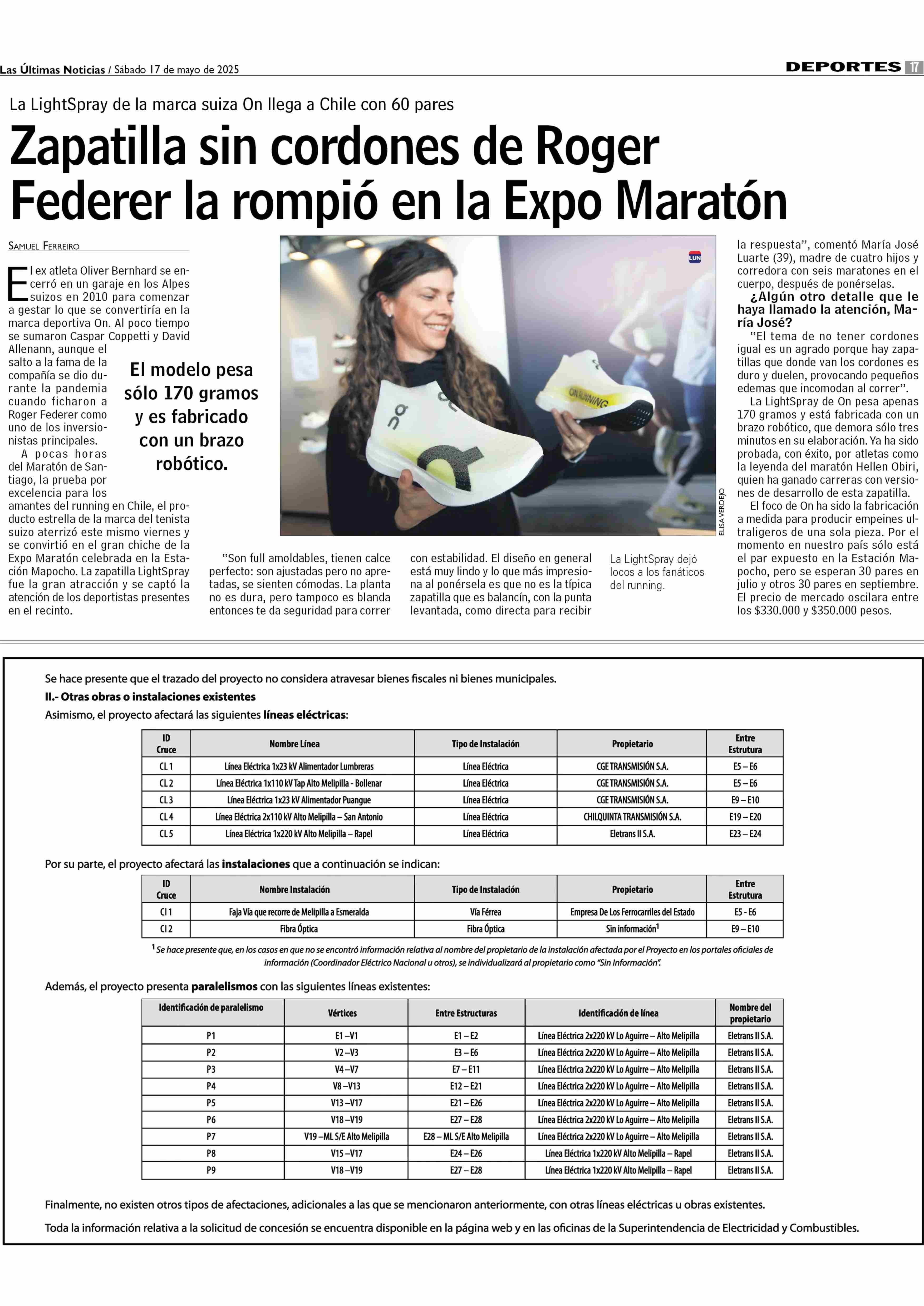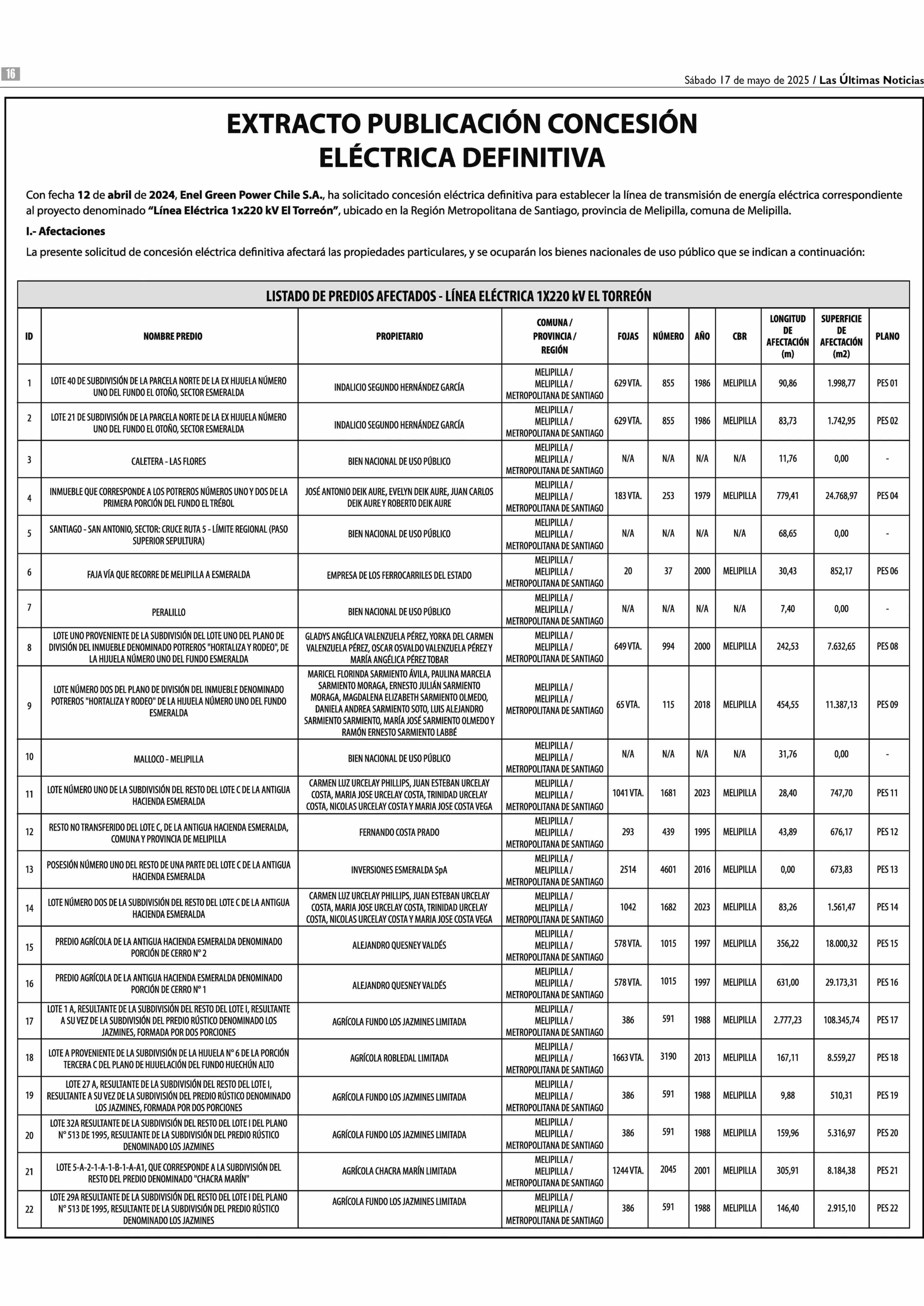 EXTRACTOS: EXTRACTO PUBLICACIÓN CONCESIÓN ELÉCTRICA DEFINITIVA 17-05-2025 Las Últimas Noticias |